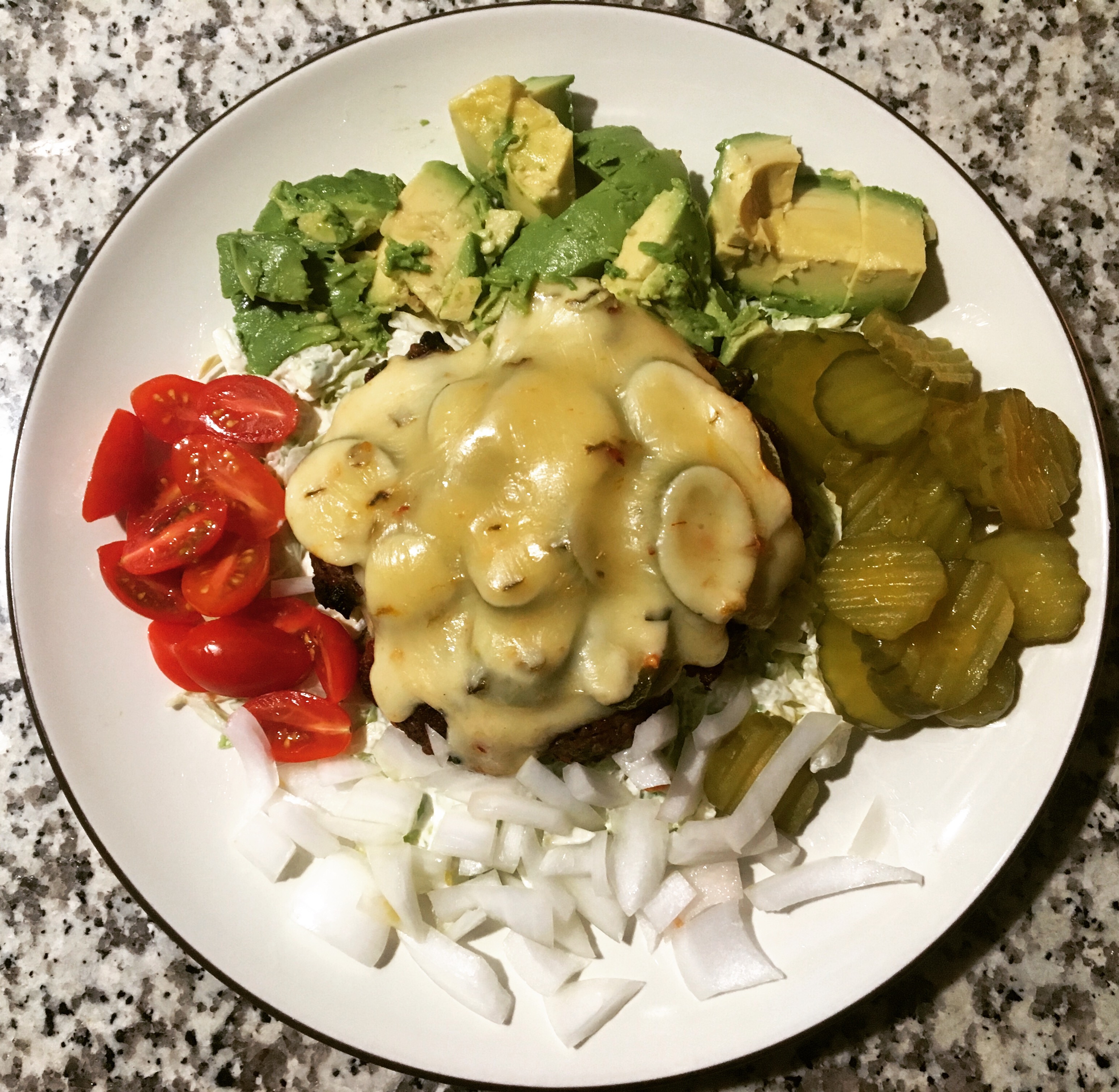 Friday bunless burgers!!! Or is it a hamburger salad? Semantics! Really don’t have anything else to say about this meal other than that it was great. Until next time!