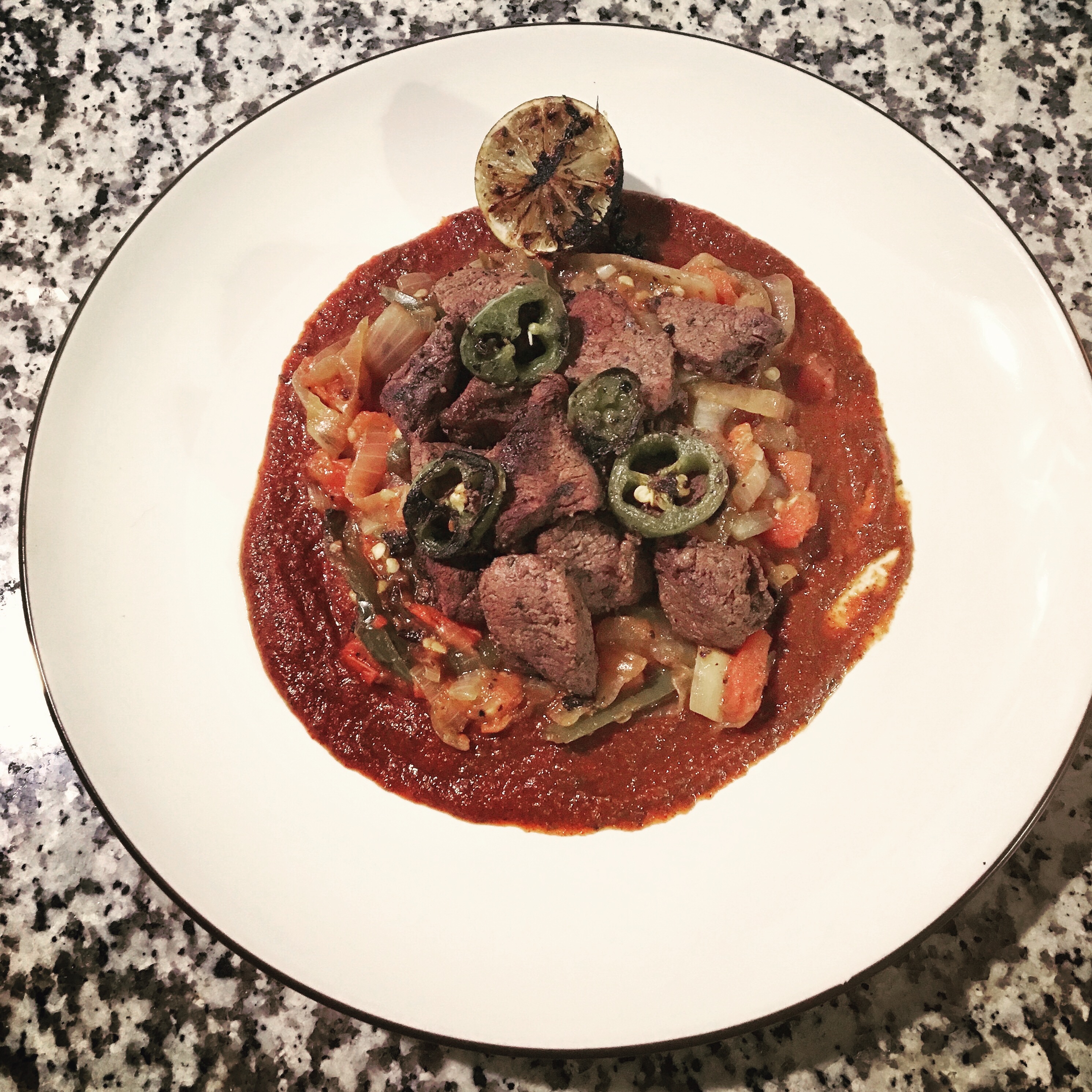 Monday was an experiment. Went with what I had. The base is a ranchero sauce I conjured up from scratch topped with onion, jalapeño & grass fed beef. I’ll be the first to admit that the picture looks like something, well… unpleasant. Thankfully it was delicious. Bekah was basically in tears trying to finish it. I’d say I succeeded.