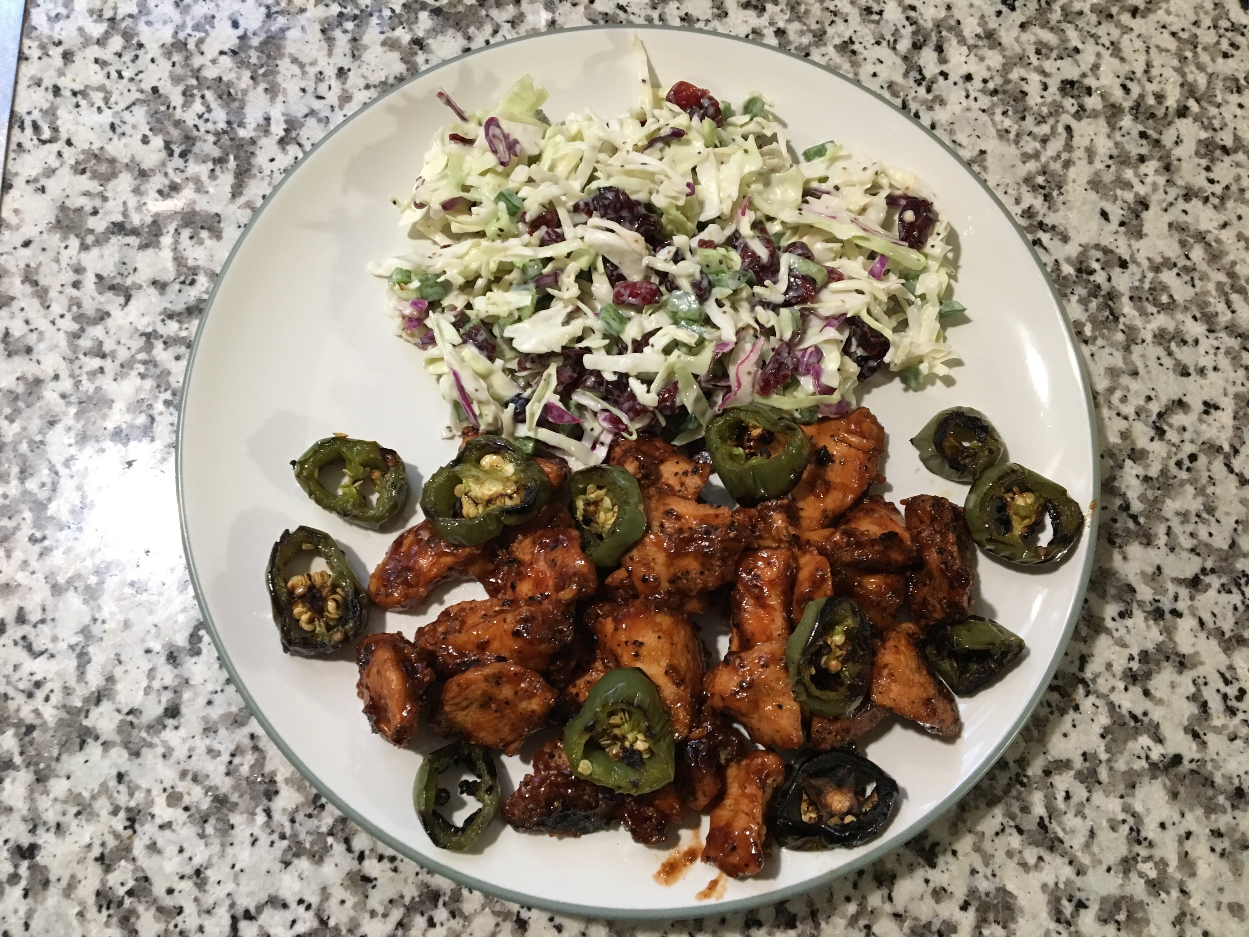 I got to grill. BBQ chicken & grilled jalapeño and a spicy slaw. This was fantastic.