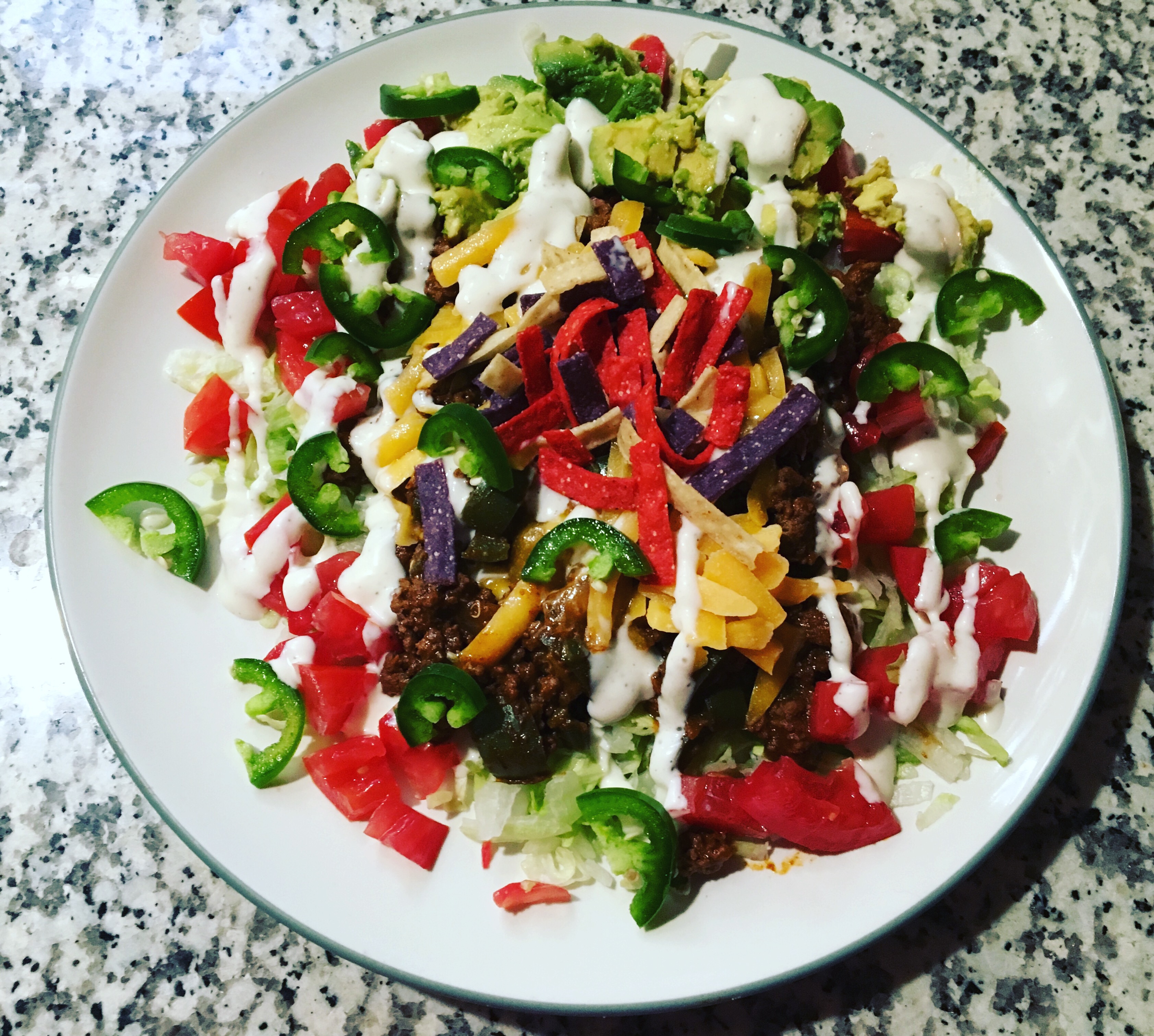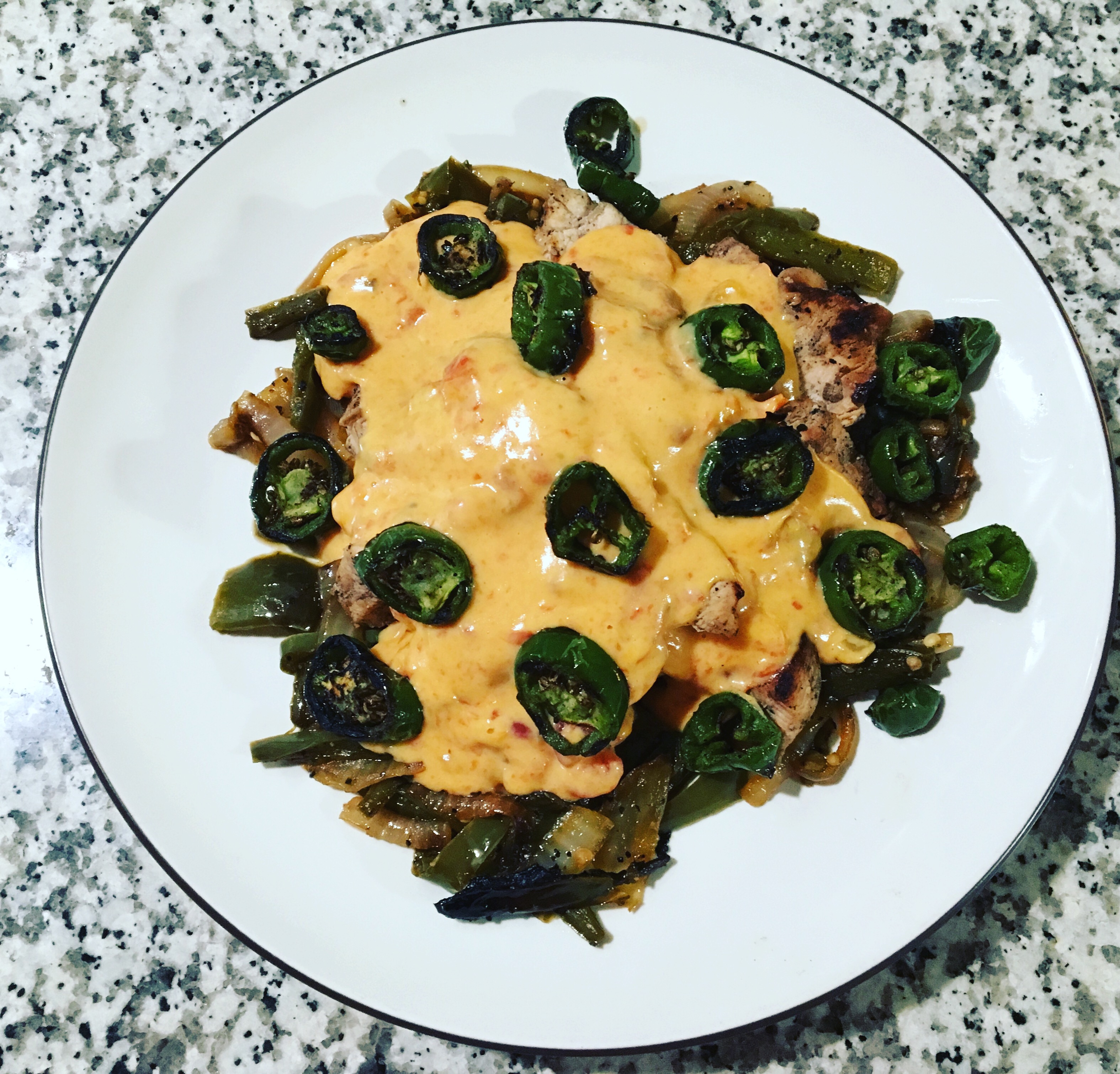 Monday dinner was chicken, jalapeño & onions smothered in warm queso. Can’t go wrong here. What a simple delicious meal.