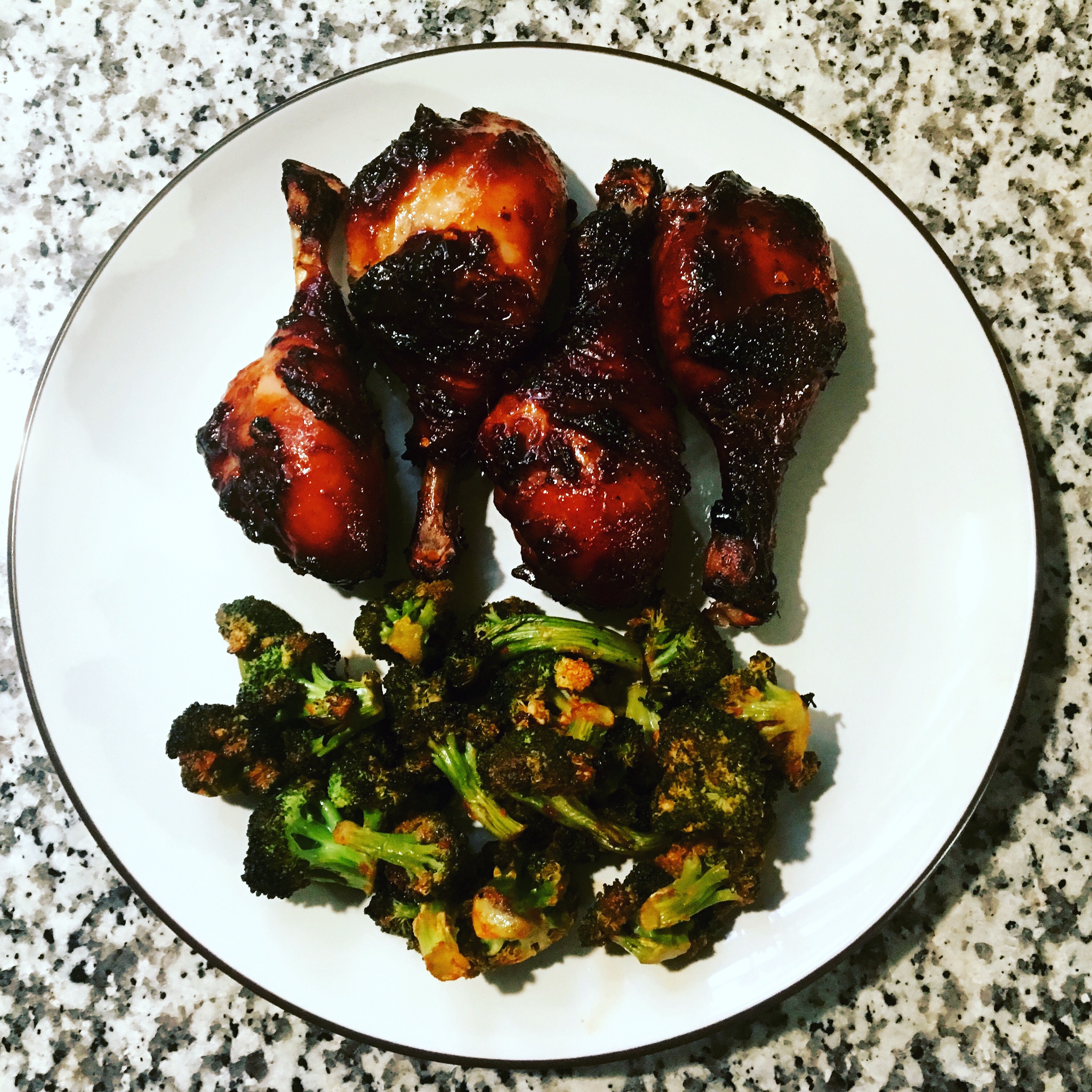 Ghost ginger soy chicken legs.  I guess I had a look of anguish.  Bekah asked if it was hot.  Yes!  What gave it away?  The fact that my nose was running or that I was red as the pepper I ate?  Was it because I looked feverish?  Pretty great meal.  I’ll make this again without ghost.
