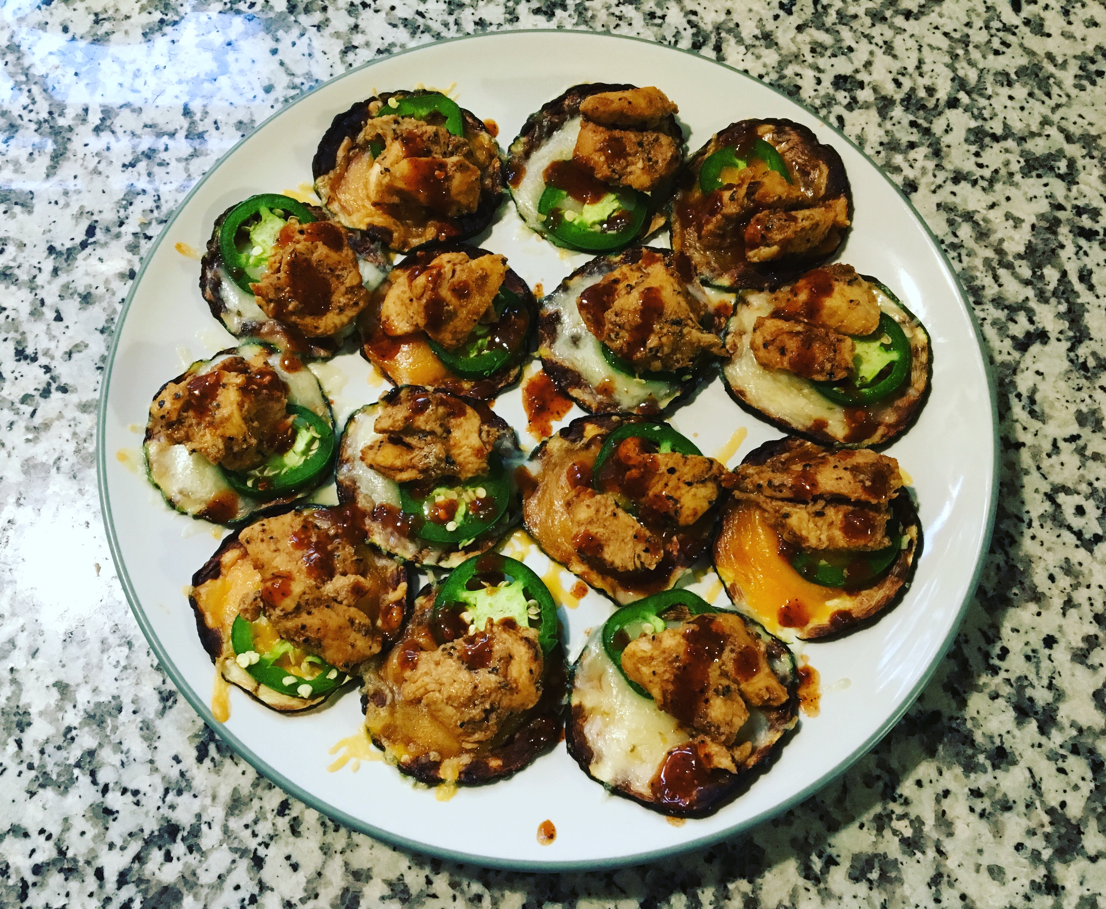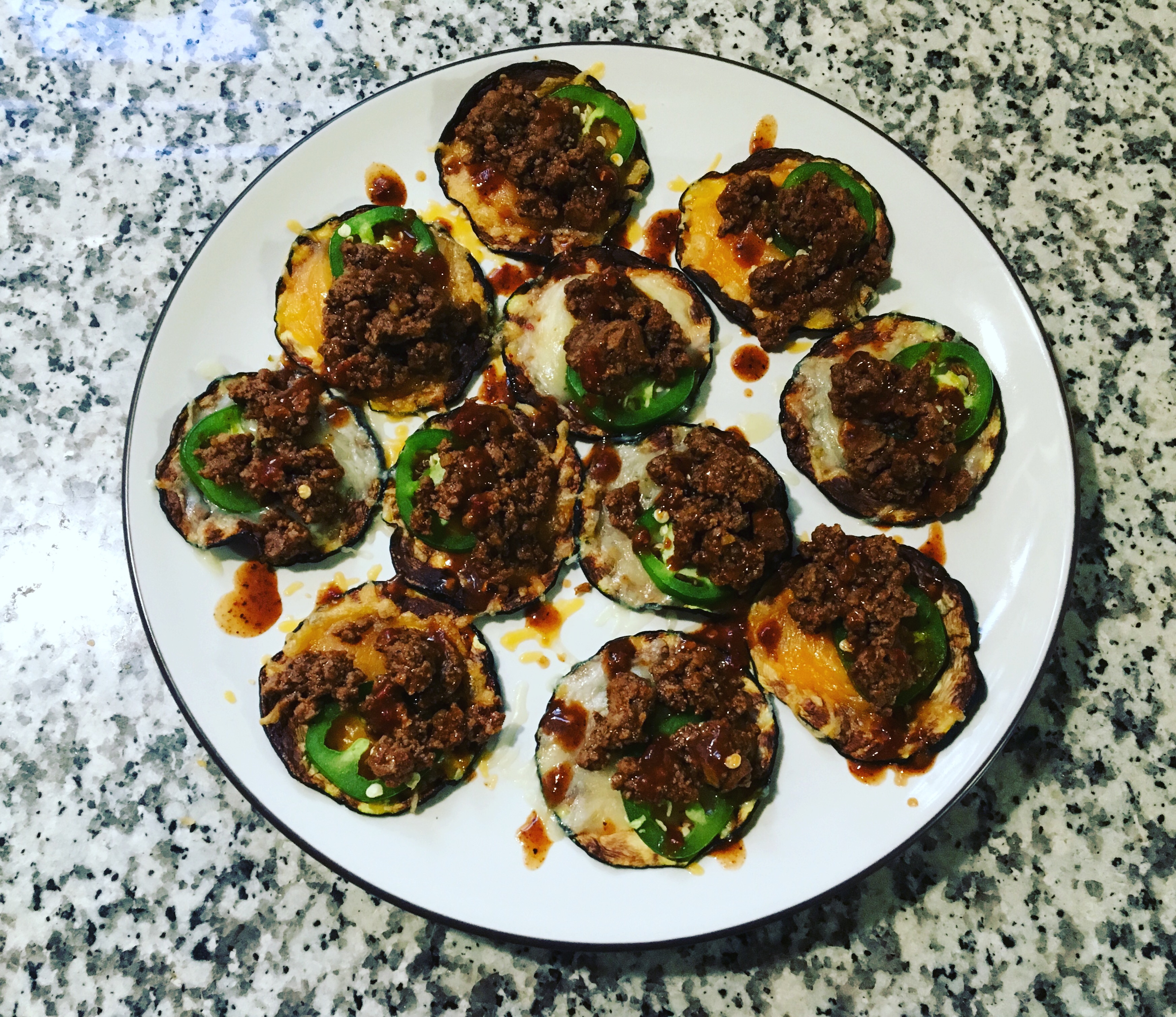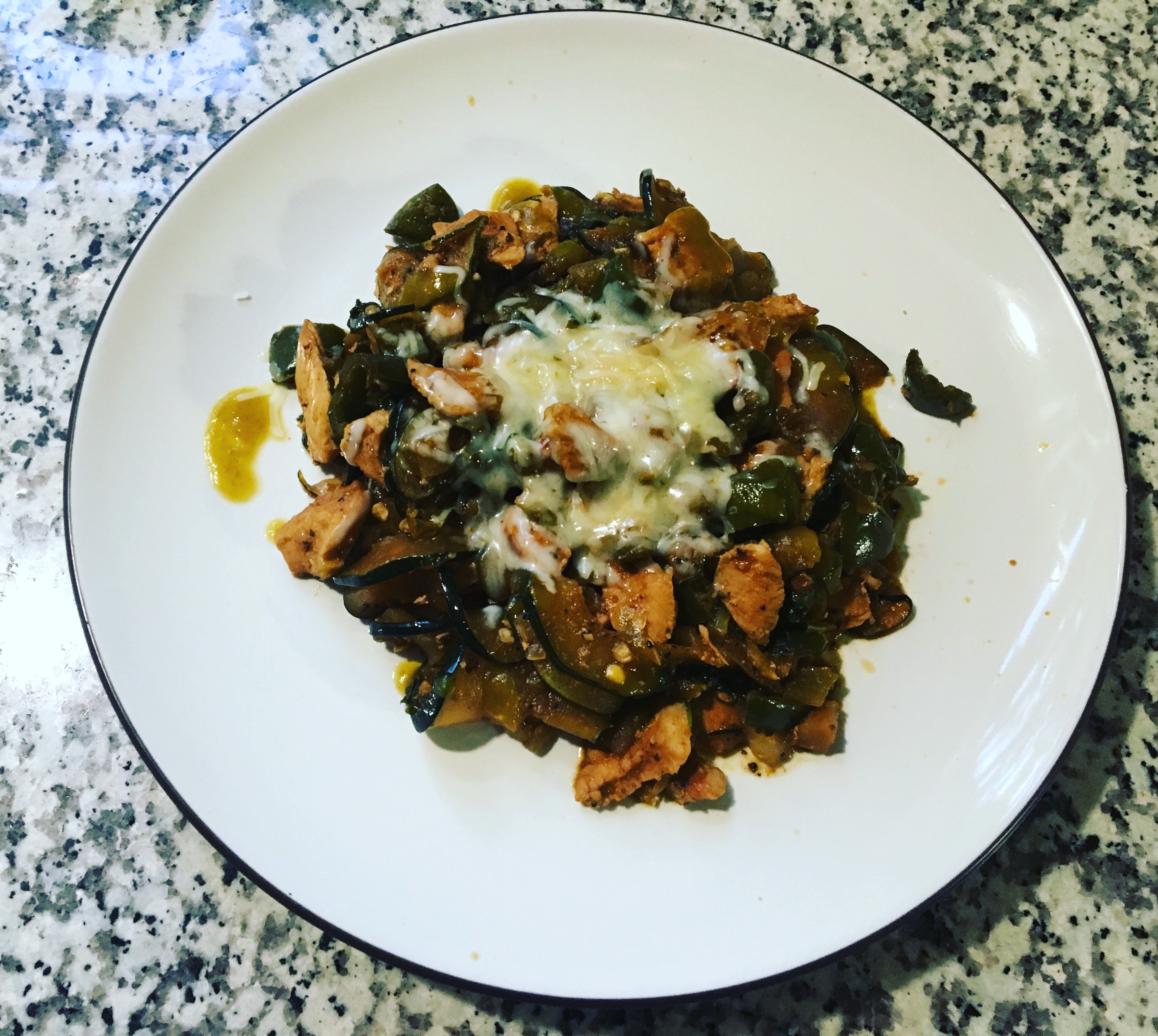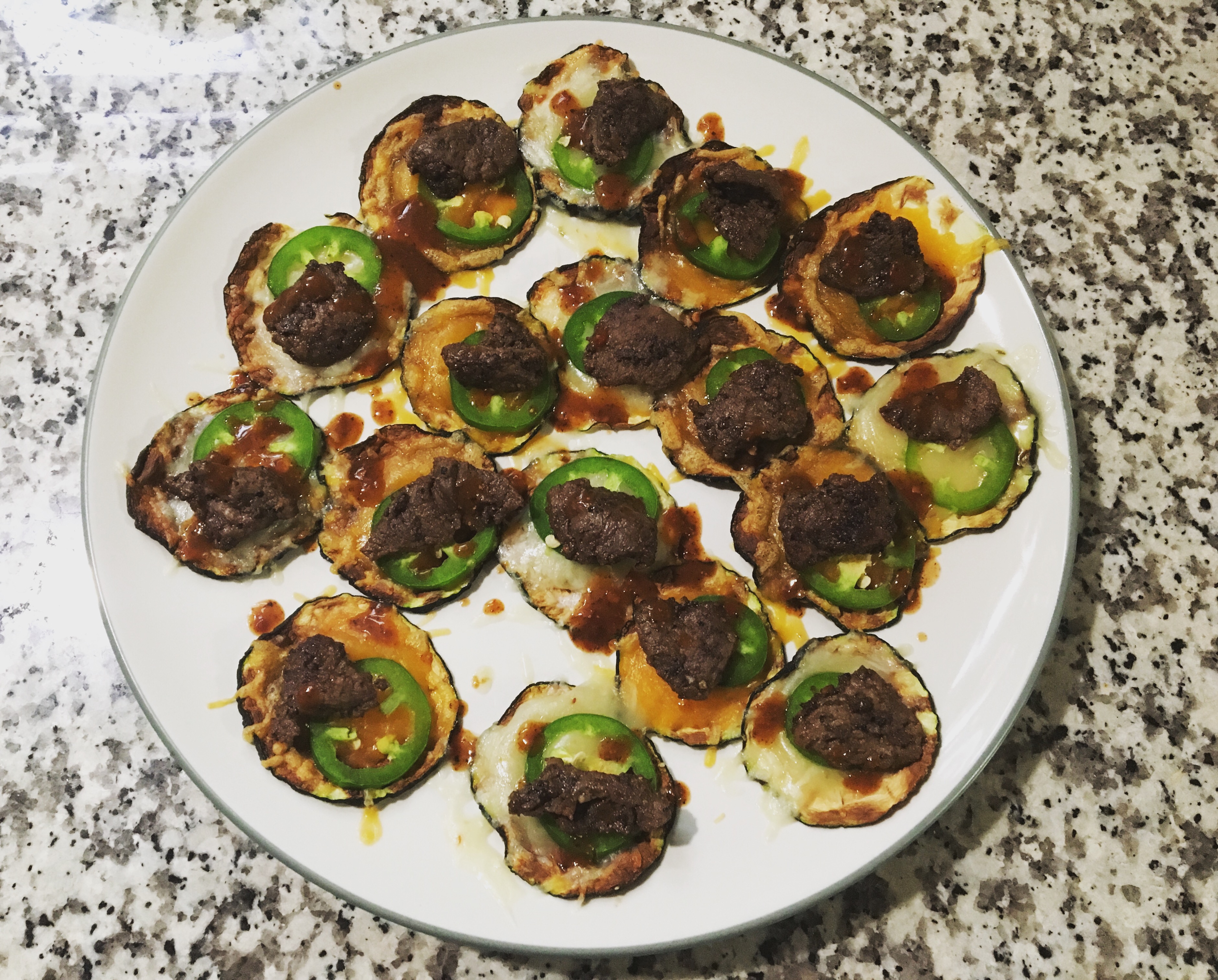 So three meals of zachos. That is zucchini nachos. I have a zucchini “pusher” in case you forgot and my supply isn’t dwindling. So you thinly slice the zucchini and microwave them in batches for 15 min on 50% until they are lightly browned and crisp. I salted mine just a bit to give them flavor. I tried three different toppings: steak, chicken & ground beef. I would rank the chicken first, steak gets second, while beef is third. All three were good though. I love nachos almost as much as I love pizza. They have their similarities if you think about it. Both are covered with cheese and can be topped with various ingredients to make them unique. Because of the carbs I can’t really enjoy them all that often. This was a nice fix for that problem. Highly recommended for those looking for a lighter spin on a fantastic dish.