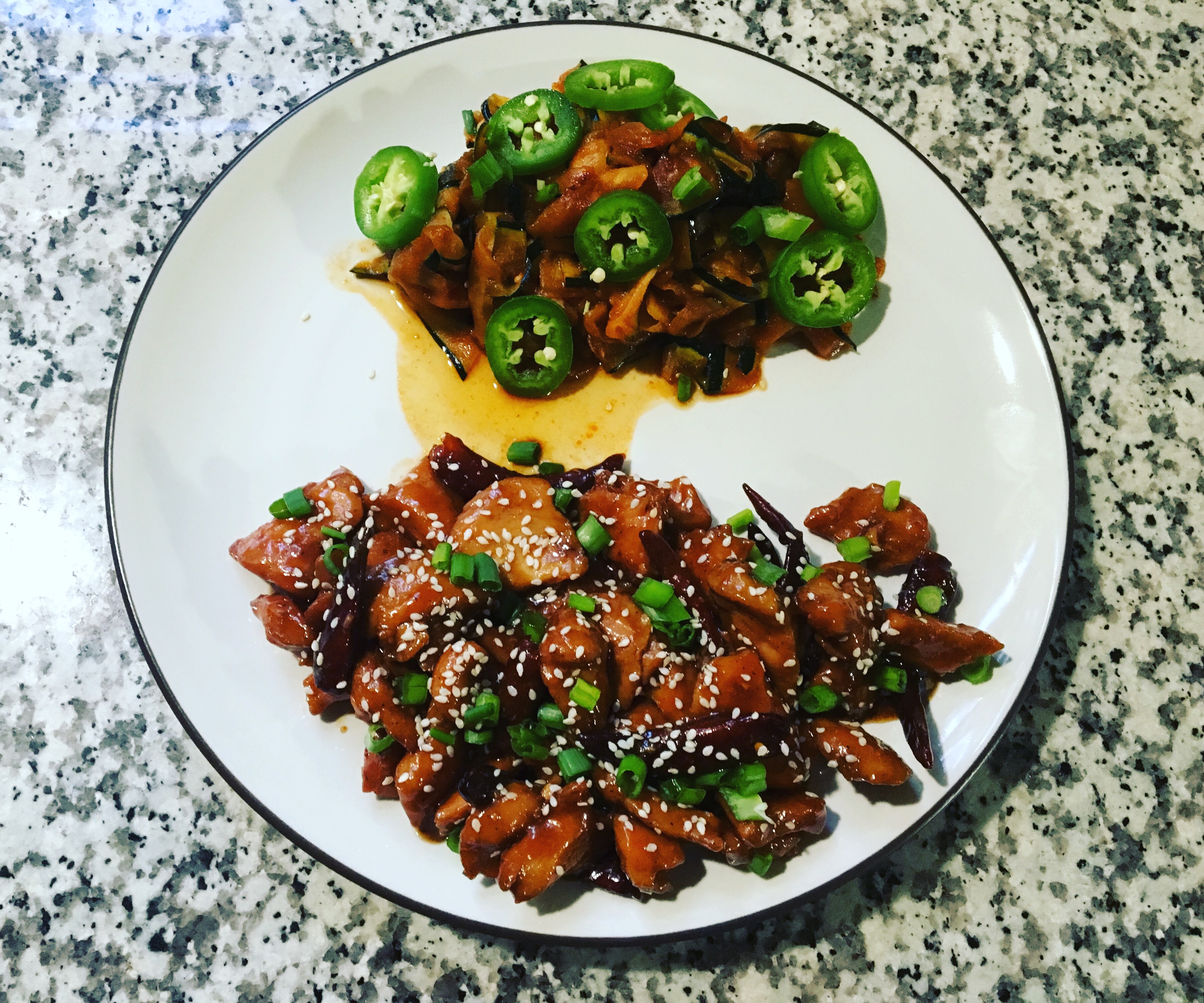 Sesame chicken with sriracha zucchini. I used some red chilies on this one and it was very warm. 10 pepper hot!!! Bekah thought I was insane, but what’s unusual about that. It’s not like I didn’t just eat ghost for a week. This was warm, but not even comparable. Turned out to be a very good meal.
