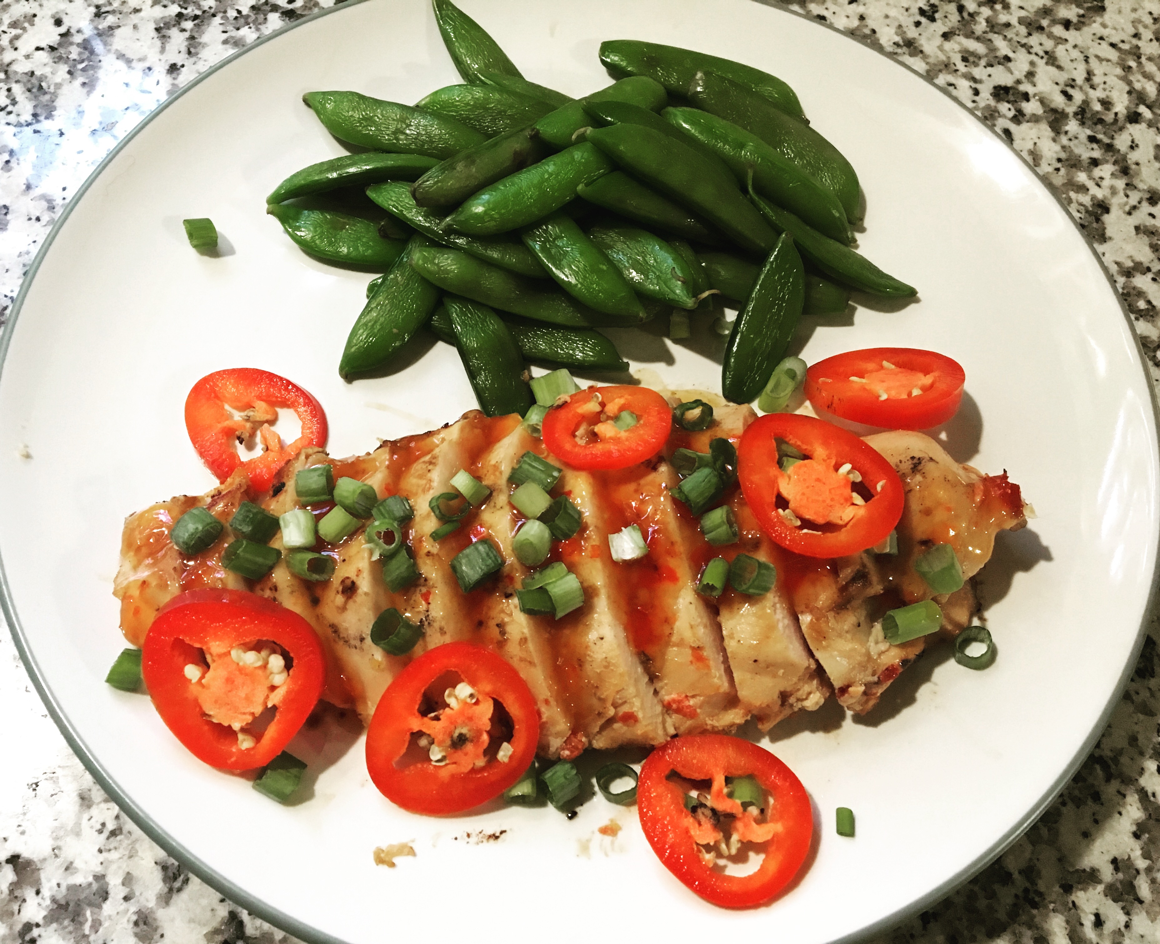 Sweet chili chicken. I’ve eyeballed this at HEB for a long time but for some reason I have an aversion pre-marinated chicken. I guess the idea was that I could always do it better? I don’t know. I eat the marinated pork tenderloin so what’s the difference. Pretty snobby attitude to have towards food I realized so I finally grabbed this off the shelf. Let me tell you I was pleasantly surprised and will purchase again. If you are interested in what I’m talking about here is a link to the dish: