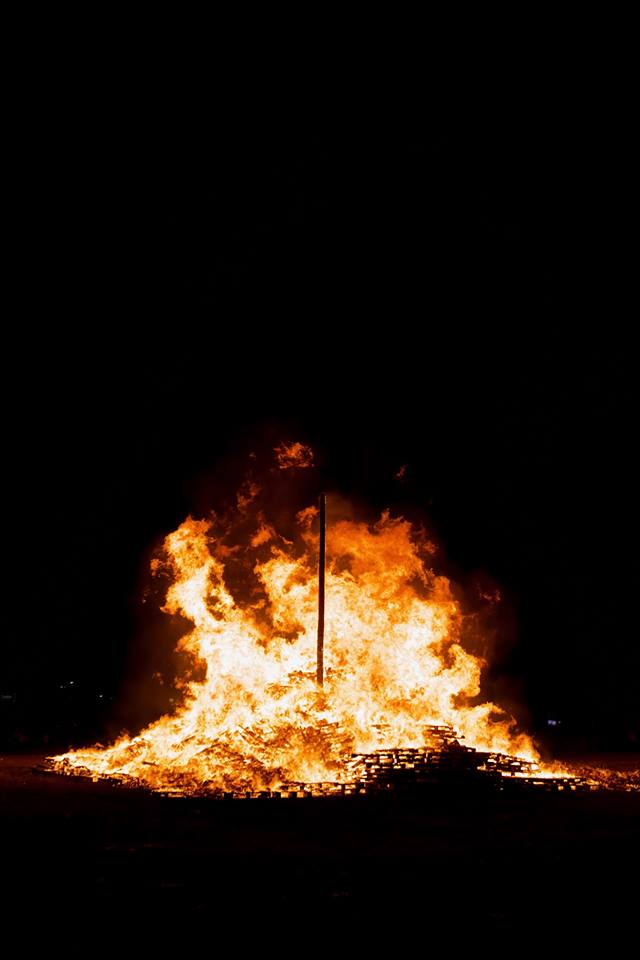 For the first time ever I went to the bonfire.  It was perfect weather for a fire.  I didn’t get as close as I would have liked because “someone” didn’t dress appropriately and was afraid to run into anyone I might know.  So we sat on the bleachers.  It was still a beautiful sight in this pyro’s eyes.  Sadly we missed the fireworks.  “Someone” had to pee.  So we rushed back to the house and as soon as we got there I heard the first BOOM.  Not helped by the fact I got behind someone that would make a snail seem fast.  (Notice a trend here?  I have a knack for getting behind slow-pokes.)  We tried to make it back but it was too late.  Epic fail. Oh well.  I saw fireworks a few weeks ago.  At least I can say I saw the bonfire from afar.  Next year maybe I’ll just go alone.