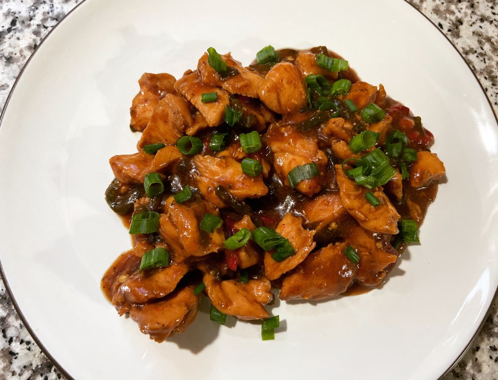 Night 1.  It was Chinese.  I threw together both red & green jalapeño and made a sauce out of soy, mirin, & brown sugar.  Cooked it down to a nice thickness and wa-lah!!!  This had a high flavor profile and just the right amount of heat.  No way would this have been acceptable had she been home.