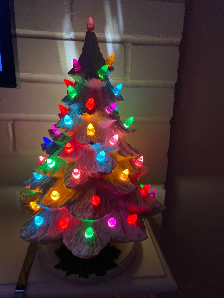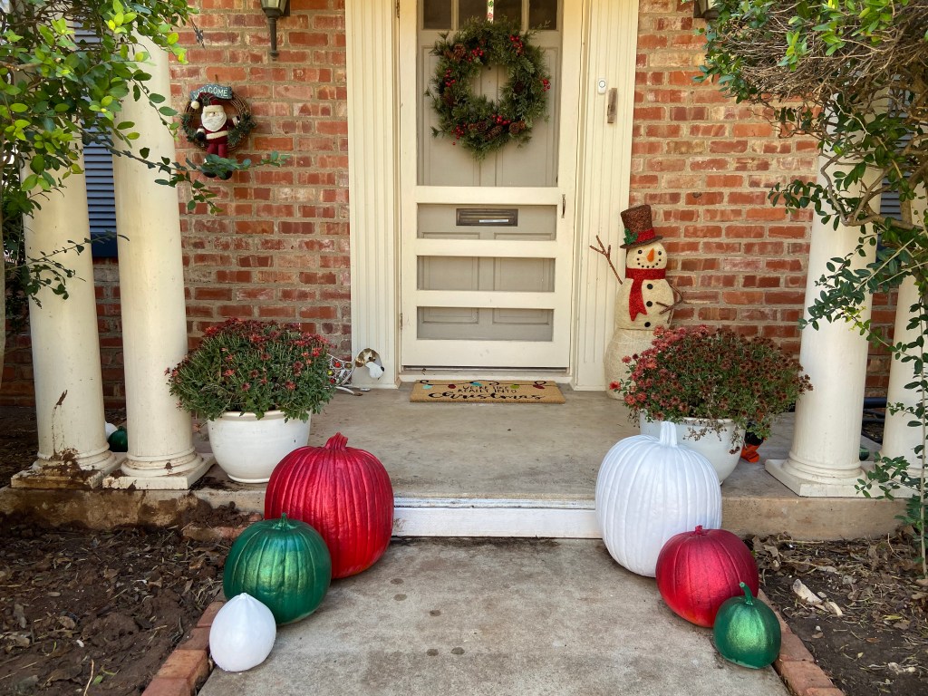 It’s finally that time of year. Get out the Christmas decorations and put up some lights. We realized we have a LOT more fall décor than Christmas. The house looks empty without the pumpkins. Speaking of which, I painted my pumpkins to look like Christmas ornaments. I think they look great, if I must say so myself. I need to get ambitious and put up some lights outside. I always have in the past. Heck, I decorated our house and my parents. Ever Friday after Thanksgiving I’d climb up on their roof and attach lights to the shingles. After their house was aglow, I’d go home and do our porch. For now it’s just my snowman shinning on the porch and a discounted fake tree I got last year in our front window. I suppose that’s a start.