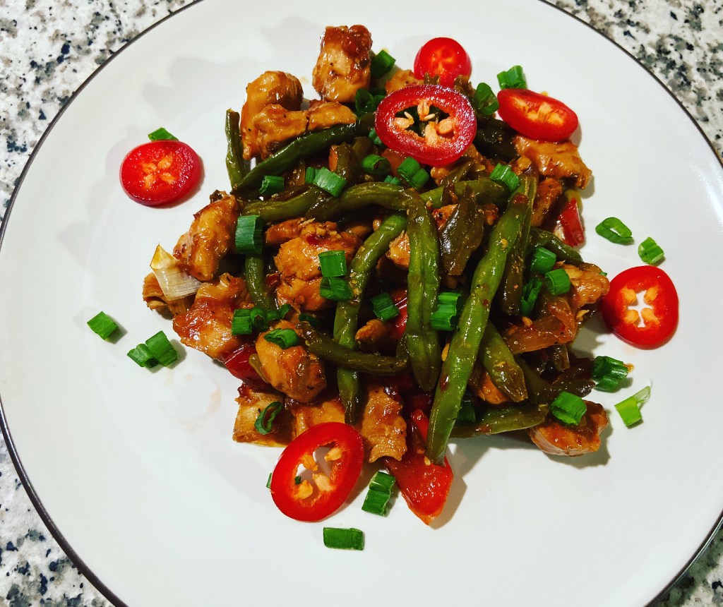 Let’s just throw whatever we have together and call it a meal. Green bean chicken stir-fry? Sure!! Add peppers & onion? Why not. It was pretty tasty and fairly effortless. What more can you want. Sometimes just let the meal cook itself. Besides, we had ornaments to put up.