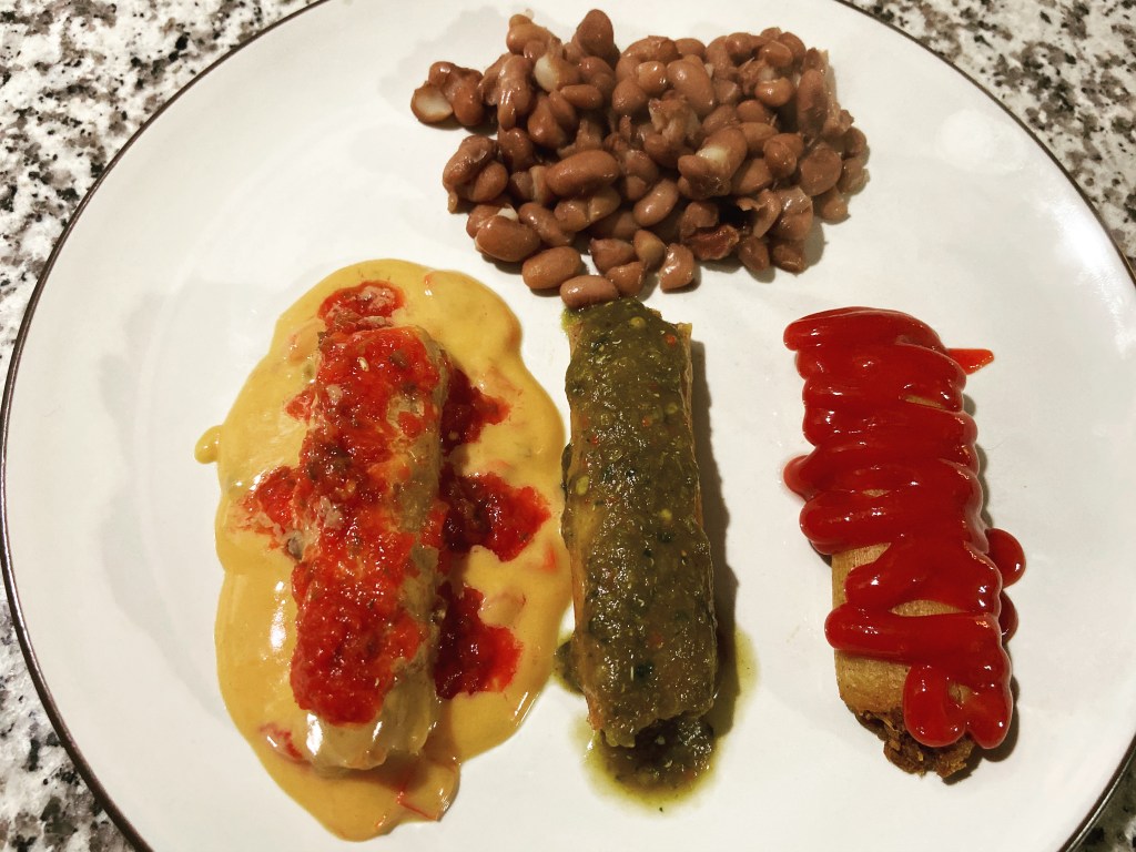 Jody, my friend on campus, made us some spicy tamales. I was pretty impressed with the flavors that were to be found. Just the right amount of heat for Bekah. Do you really want your tamales to be biting you back? No, I don’t think that you do. I know you are probably reading this, friend, so I want you to know that all my praise is genuine. Despite of what you see in the picture, I did eat one alone without topping in order to get a proper taste. As for the toppings. I had one with queso, another with green sauce I made, and a third with ketchup. Some people find that third topping appalling. To each their own, right? What do you all like to place on your tamales? Should also mention my mother-n-laws beans. Delicious.