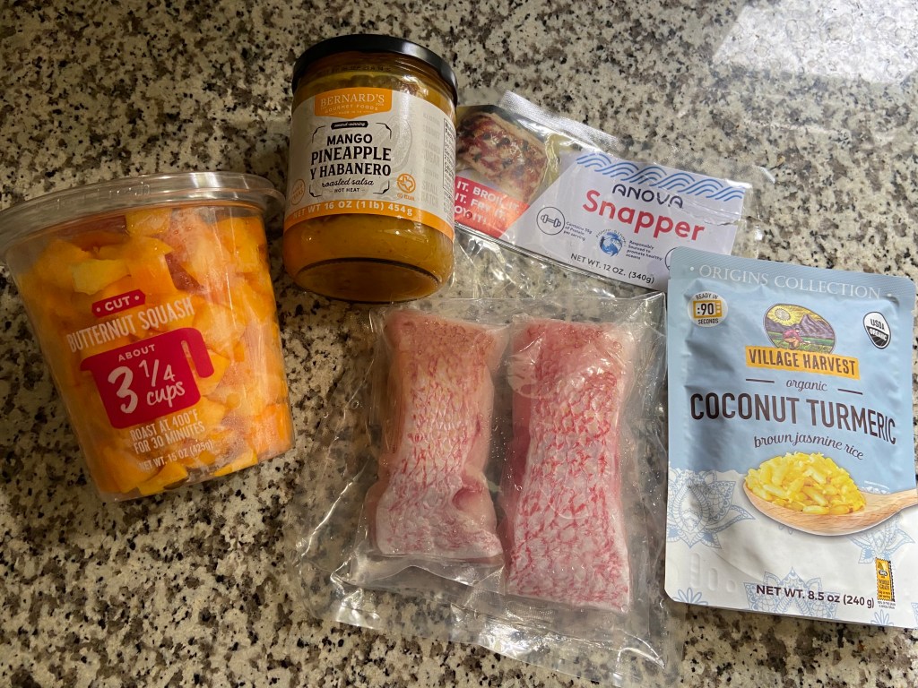 So Sunday it was Chopped round 2. I was fairly shocked to see the ingredients Bekah picked considering her condition was fragile for the drink. Snapper, mango habanero salsa, butternut squash & coconut turmeric rice. WTF? I hate mango!! I guess I have to give it a go. I made some fish tacos. Grilling the fish like it’s Cod. Roasted the squash w/ jalapeño & onion. The salsa is gross. To take away from its taste I mixed it with avocado and cilantro. That’s marginally better. The rice I decide to mix with the roasted veggies. I cook up some tortillas and bam! It all trine sour rather good. The fish surprised me. I wasn’t sure what it would taste like. Just a good white fish. Veggies worked and adding the cilantro really helped take away from all the mango. I hate mango. Bekah seemed to enjoy, despite all her pains. That’s says something. I think it’s time for her to do this.