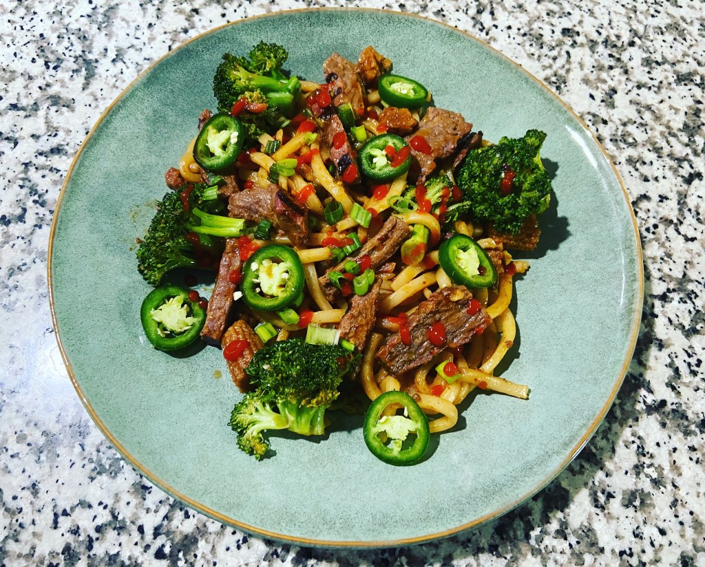 Udon noodles w/ steak and veggies. A first and pretty good.