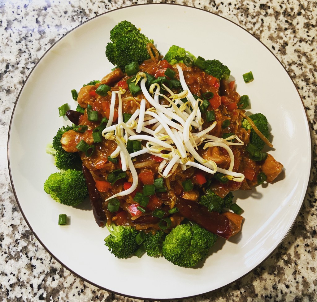 Orange chicken stir-fry w/…… GHOST PEPPERS!!!!!! It killed me and then I felt sooooooo good.
