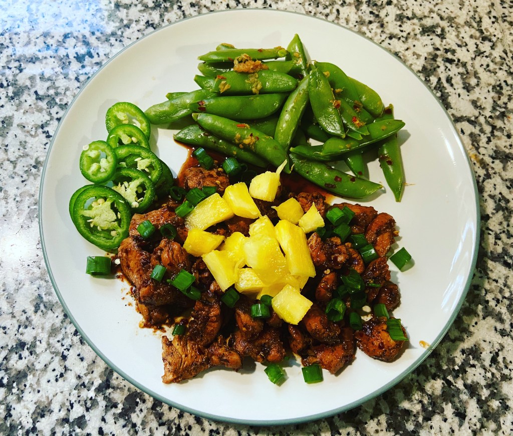 Teriyaki chicken w/ ginger soy sugar snap peas.