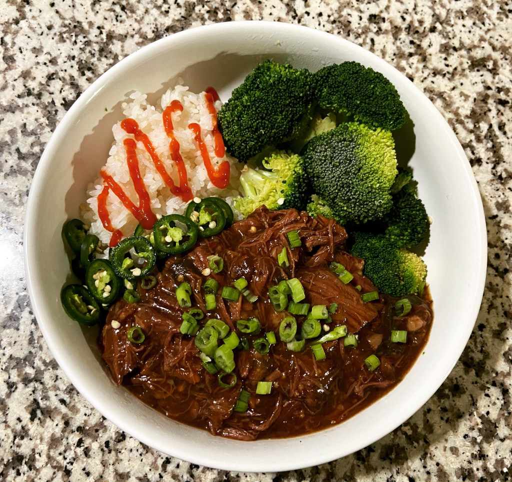 Slow cooker Asian pot roast. I’m not sure why I’ve not done this before. It’s my basic Asian marinade that I make for everything else, but applied to a roast and slow cooked. It was rather amazing.