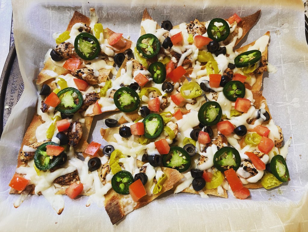 Saturday nachos. Italian nachos. Made with wonton, Alfredo, and mozzarella. Topped with real goodies. Naysayer’s be d***ed!!! It might not be 100% Carino’s, but it was my take on Italian nachos and it was delicious.