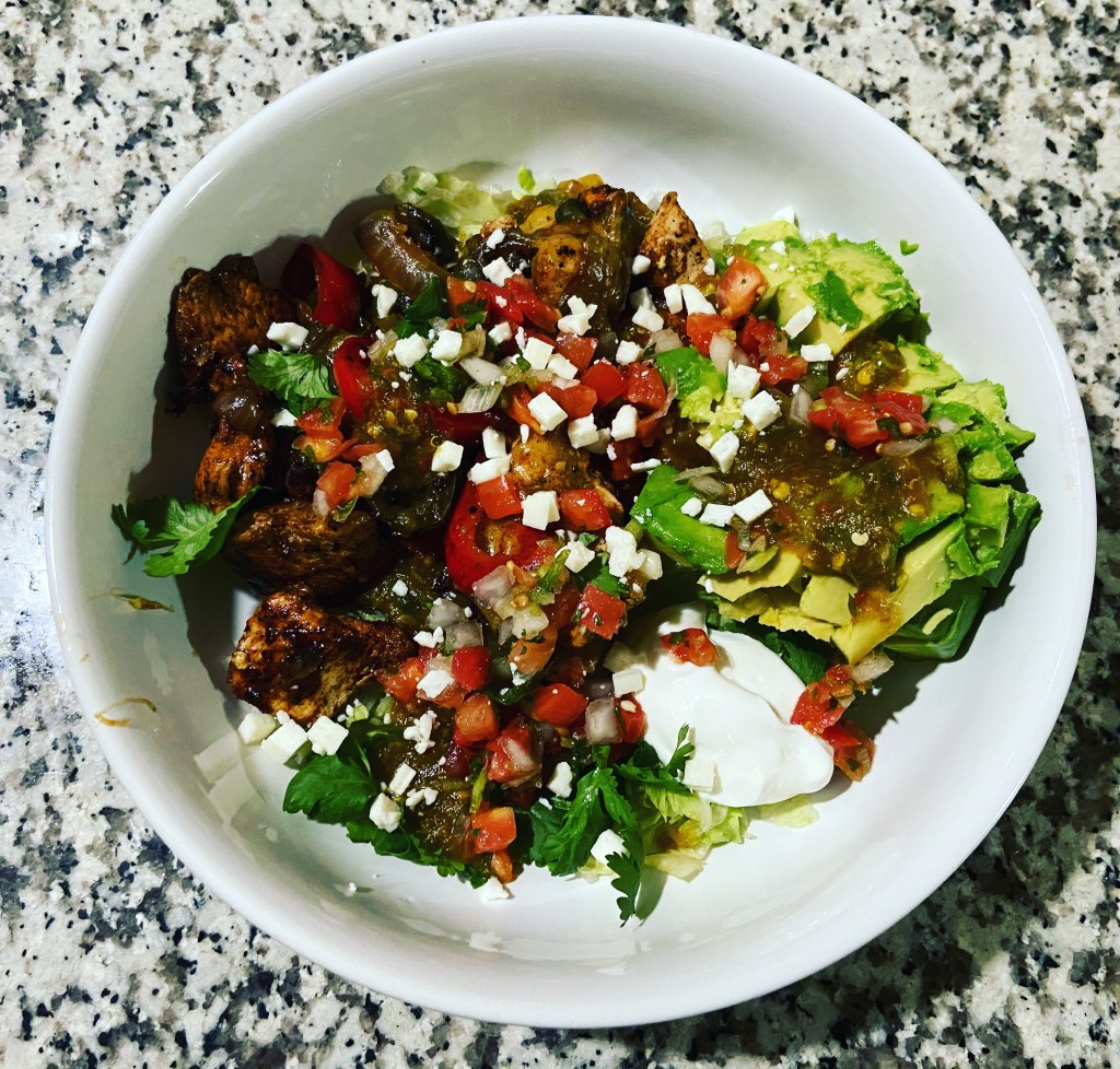 Chicken fajita bowl. You will likely see more bowls now that we have these “dinner” bowls. I like them.
