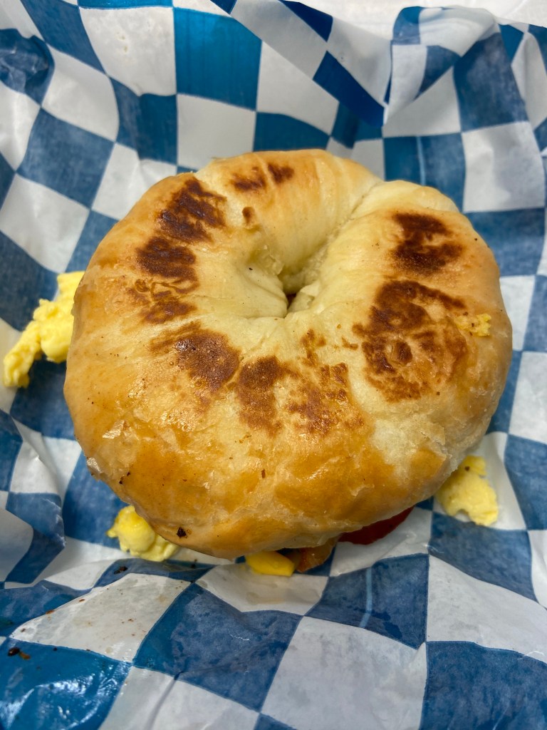 Croissant egg cheese bacon sandwich. This came from campus. This thing was amazing!!! It had no right tasting as good as it did. I skipped lunch on this day. Didn’t need it. And for under $4 it’s a real steal.