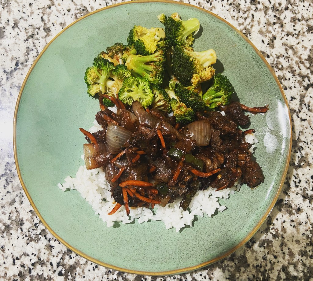 Bibigo steak! I grilled some jalapeño, onion & carrots to go with it. Bekah made some sticky rice and I made some sriracha broccoli.