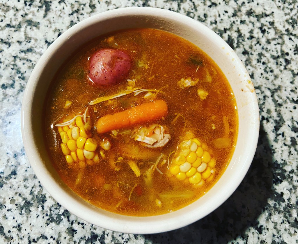 Made some caldo de pollo. It was a cold night. I think we were both happy with this.