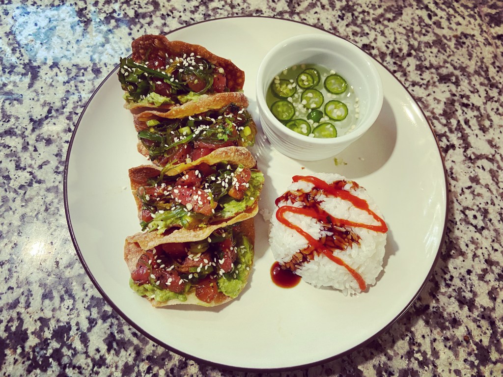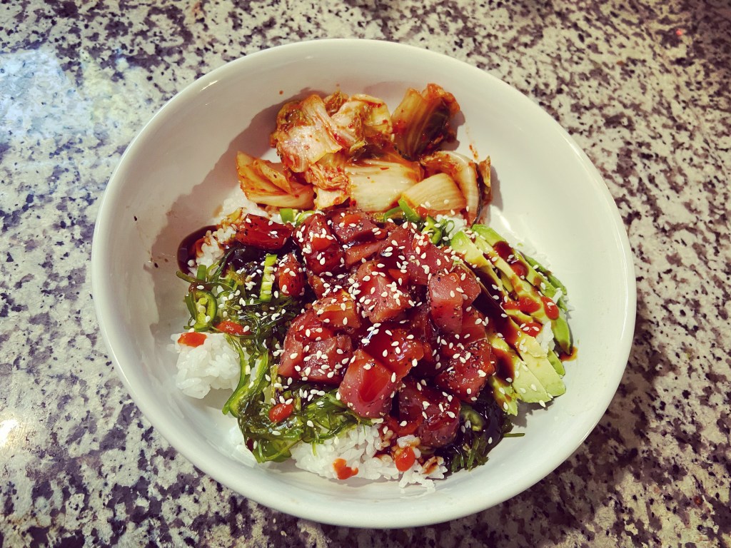 Ahi seaweed poke w/ kimchi.