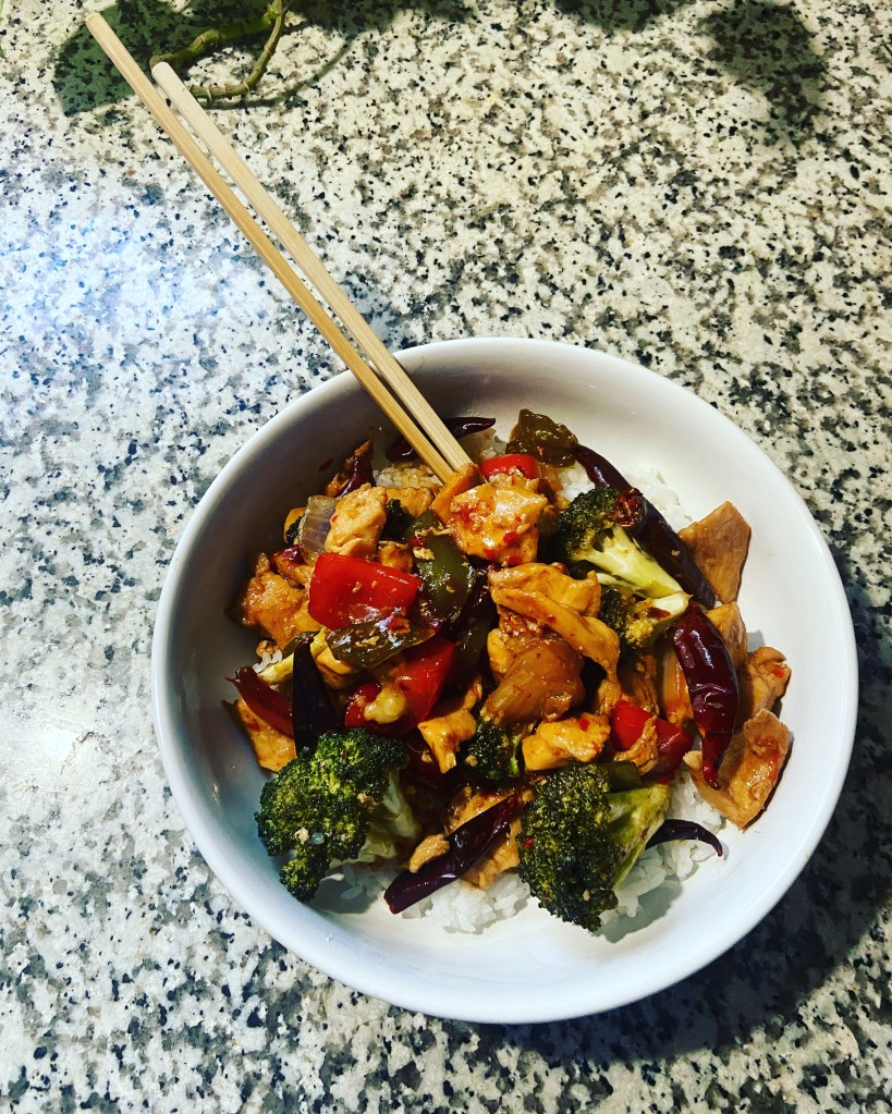 Orange chicken stir fry. Hotter than hell.
