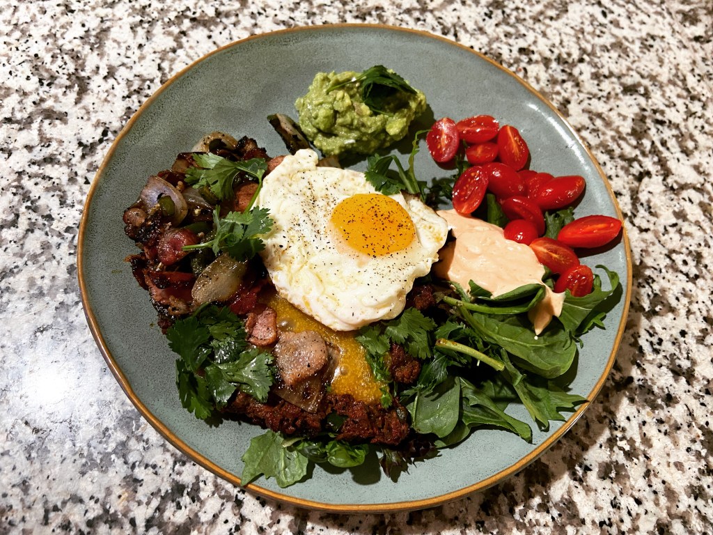 Chorizo bunless burger.