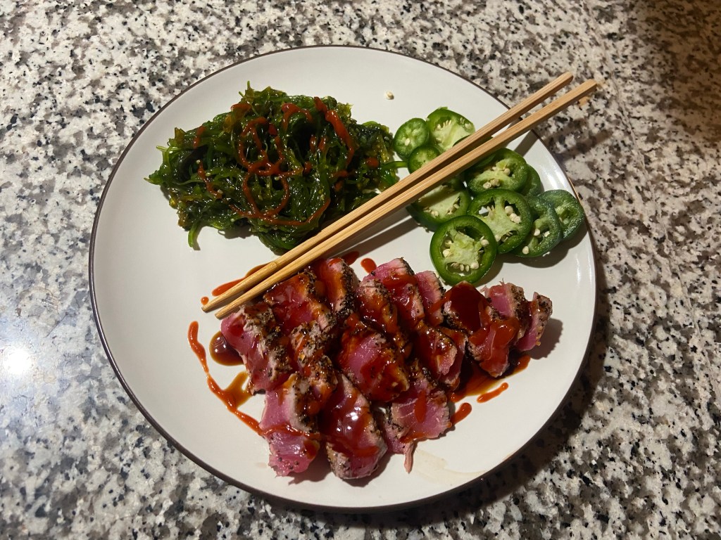 Seared tuna and seaweed. Yum!