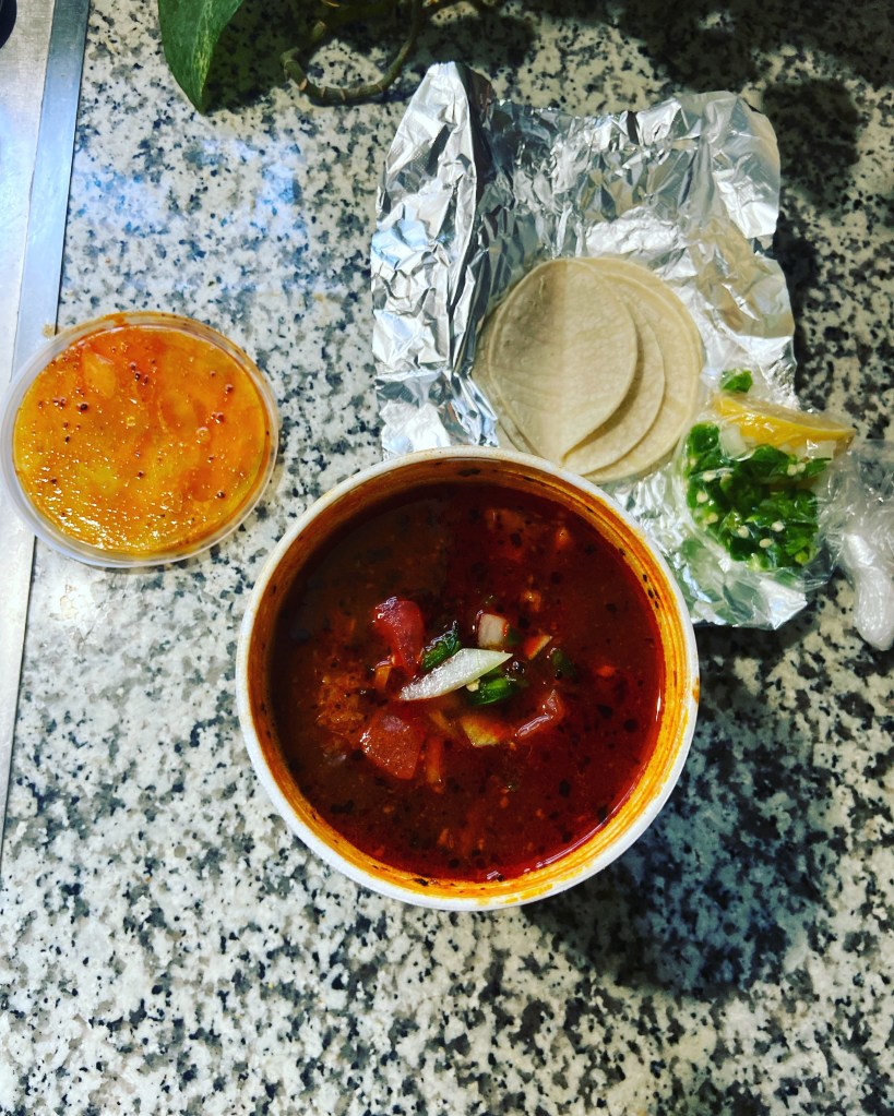 Saturday I was surprised with a burrito from Jamie and than because of conversation I Lao wanted Menudo. Great morning for food.