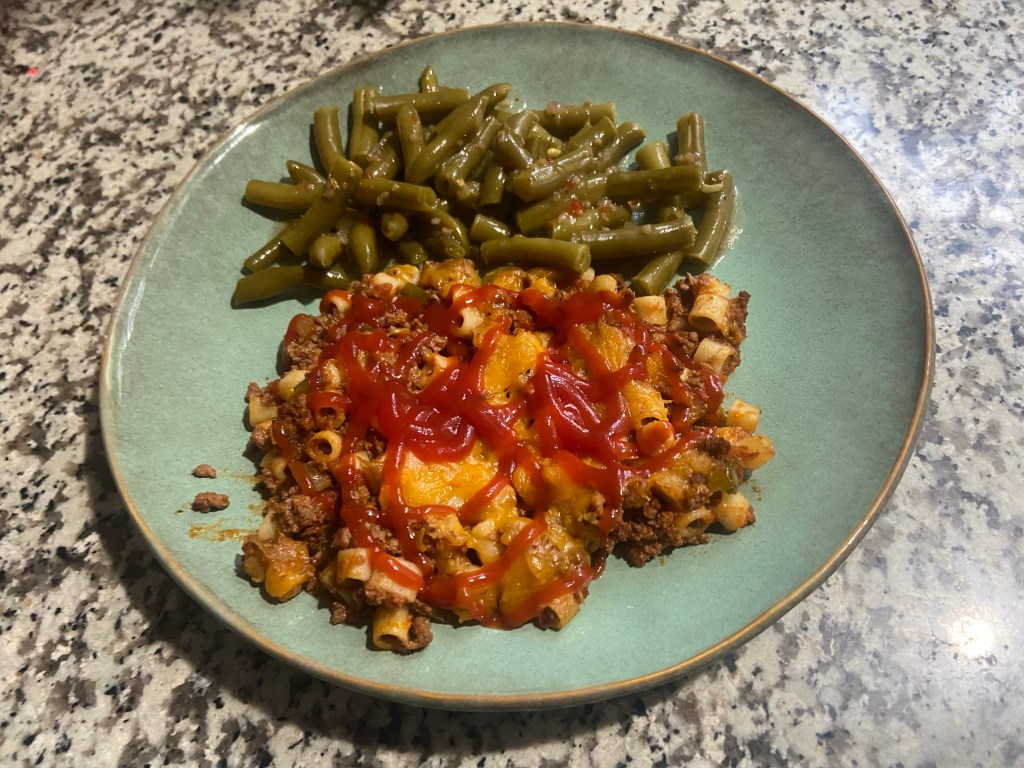 Chili Mack and cheese with the green beans.