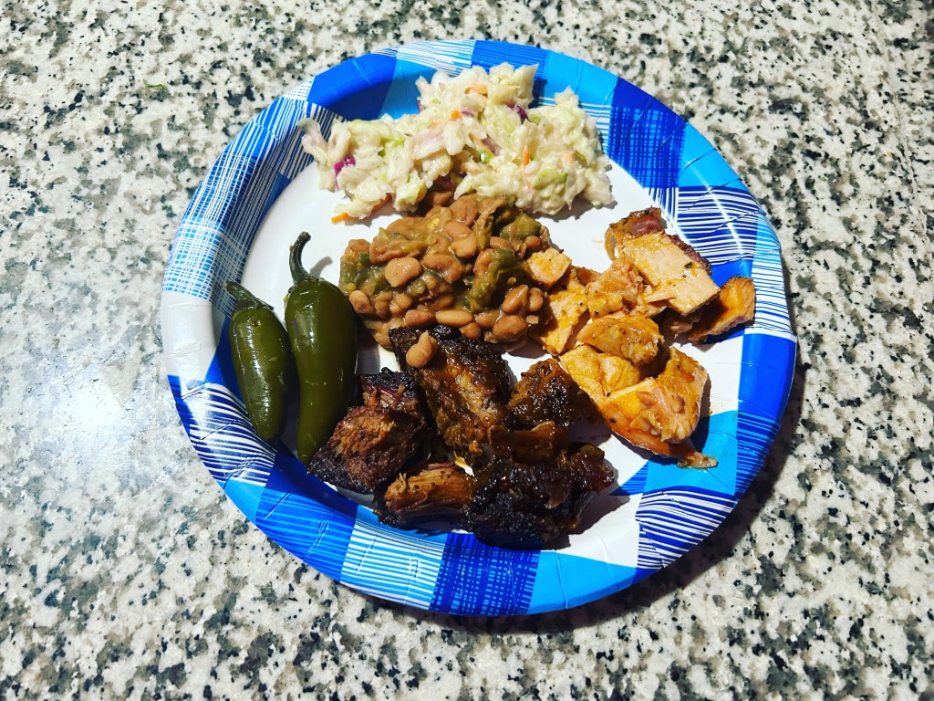 Grabbed some Coopers BBQ to go for dinner. Pork, brisket burnt ends, beans & slaw. Dinner with Yvette.