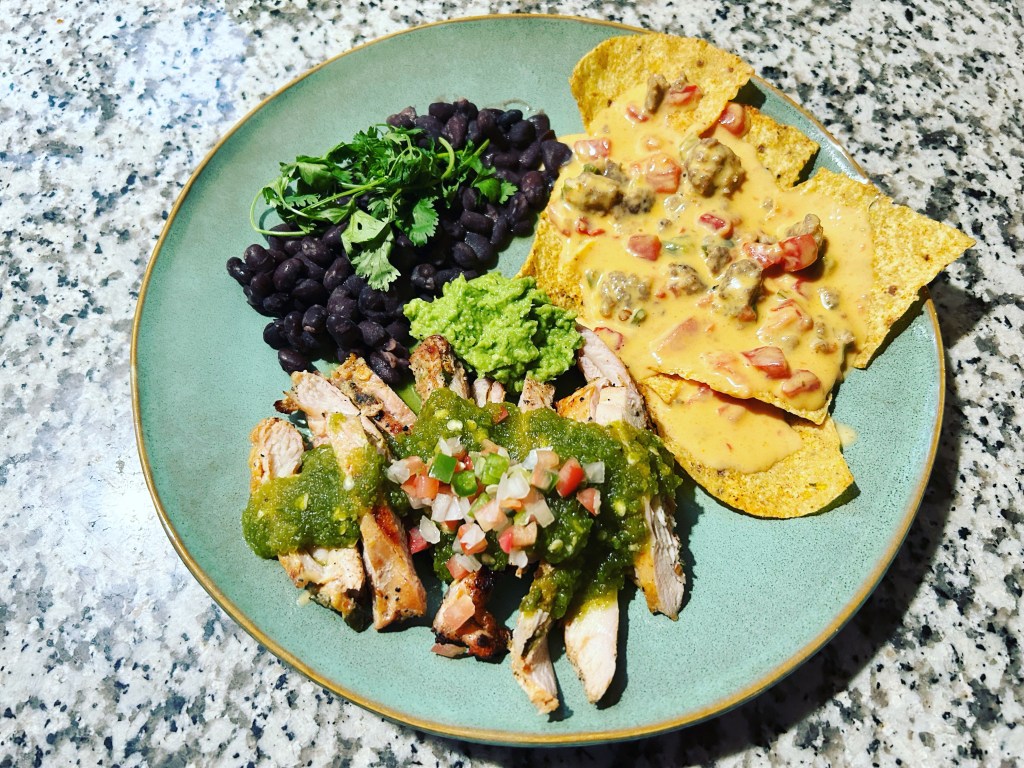 Spicy chicken thigh with veggies, pico, green sauce from Jamie, black beans and chips and Queso. I was going to make an Alfredo lasagna but Yvette doesn’t like Alfredo sauce. Oh well, this was still great. Date night was much needed.
