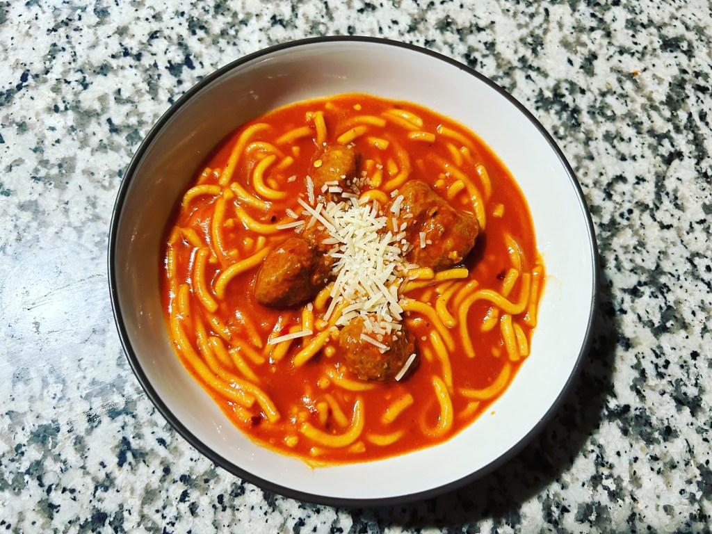 Sunday lazy dinner. Canned spaghetti. Chef Boyardee.