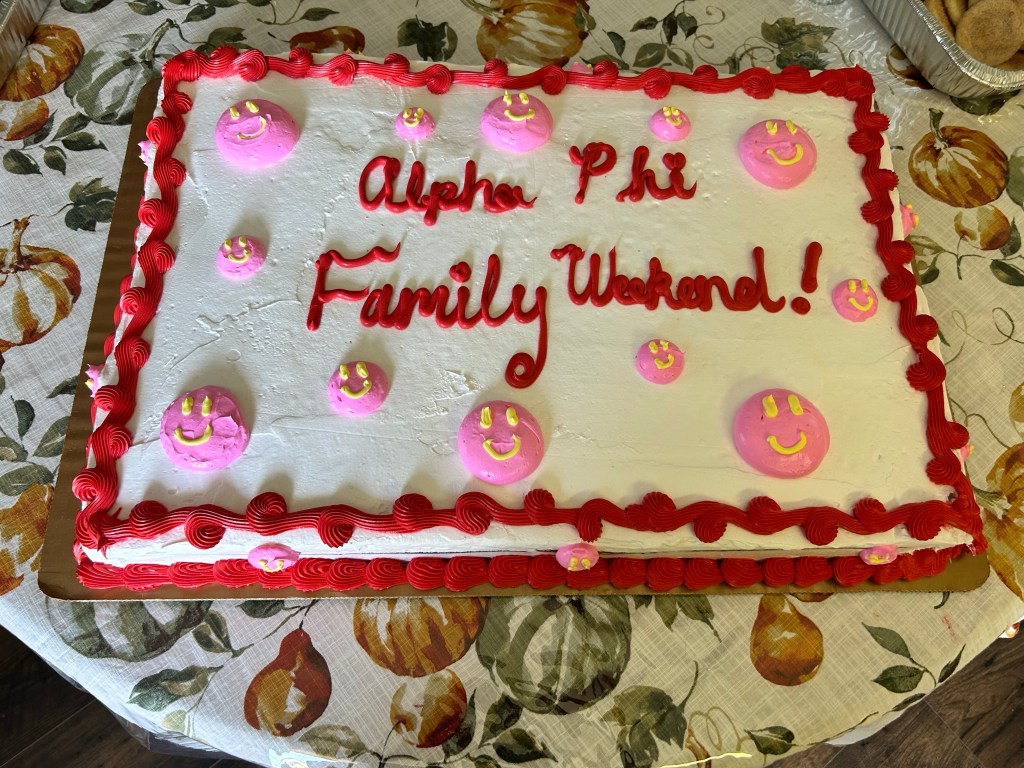 We all went to a sorority luncheon. They had a set up in a back yard and served burgers and hot dogs. Cookies and cake. It was HOT. I was happy to be there. I felt honored. I think they could have done more to make it social but this is coming from a not very social person. I happy to be there with the people I love.