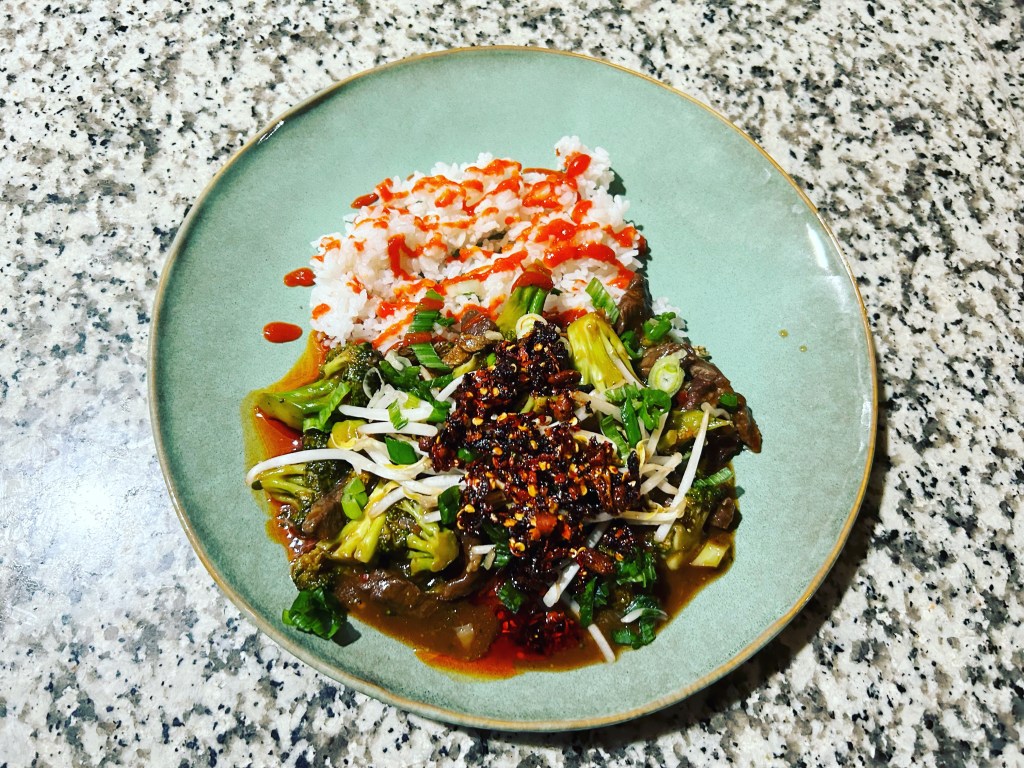 Beef and broccoli with the kids and Yvette.