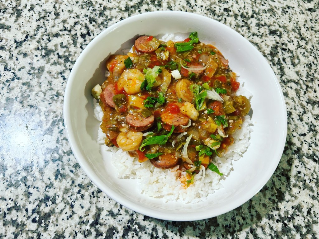 Date night cooking. Shrimp & sausage creole.