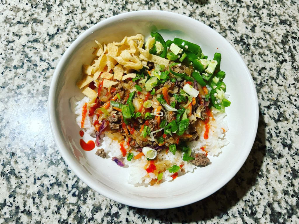 Egg Roll Bowl. I cooked for 6!! Yvette’s kids. I made enough except for rice. Everyone went back for seconds.