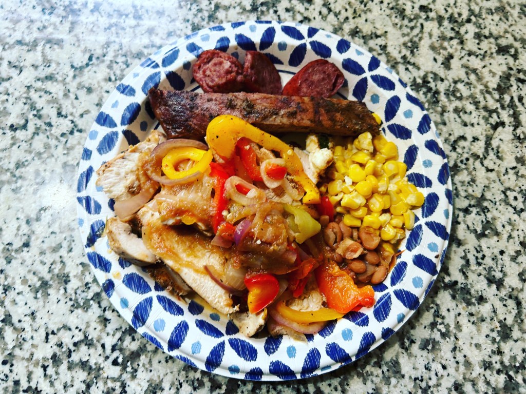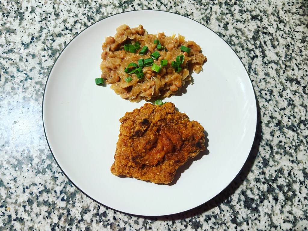 Friday fried chicken & beans and sauerkraut mix I made.