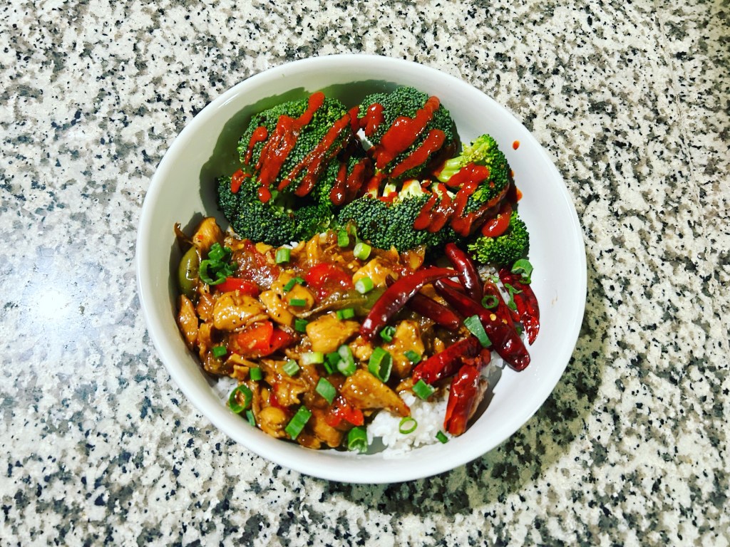 Orange chicken with broccoli.