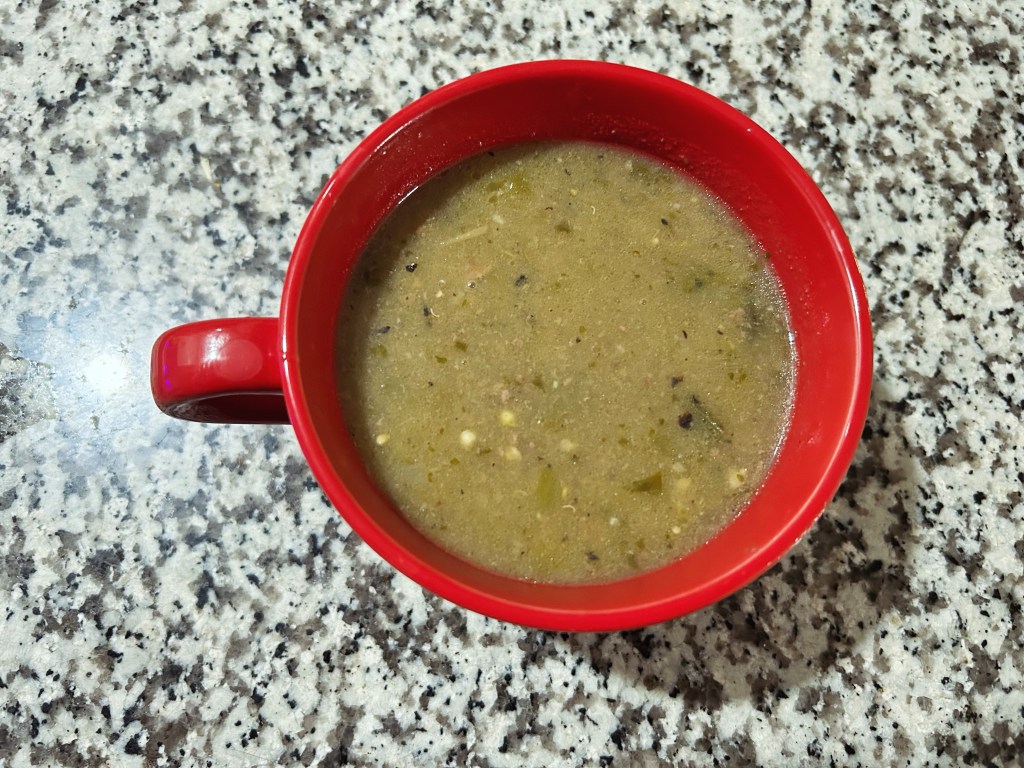 Tuesday’s and Wednesday I had green chili stew. Ground beef, potato’s, onion and jalapeño. HEB has a green chili sauce which I used with chicken broth. Yummy.