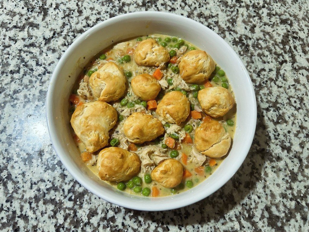 Deconstructed chicken pot pie. I’ve done this once before and completely forgot about it until it showed up on my Facebook memories.