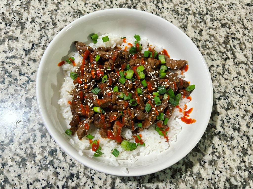 Honey garlic soy beef over rice. I, of course, added ghost pepper. Great meal.