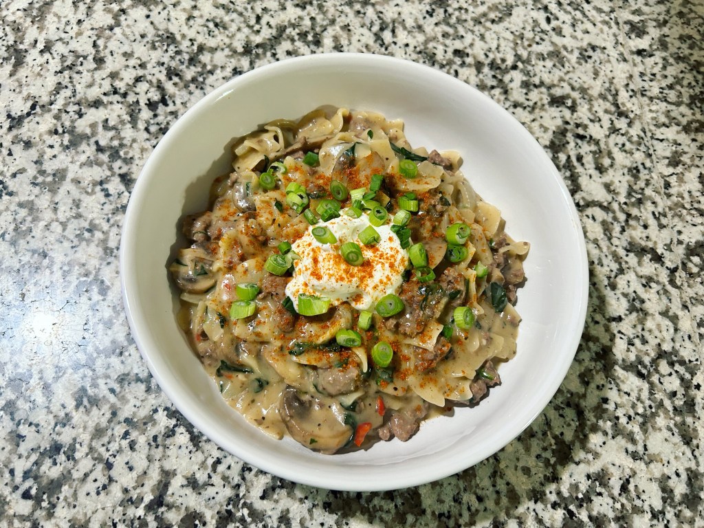 Hamburger Helper. I added mushroom and spinach.