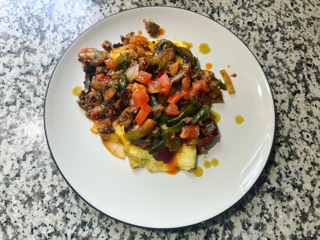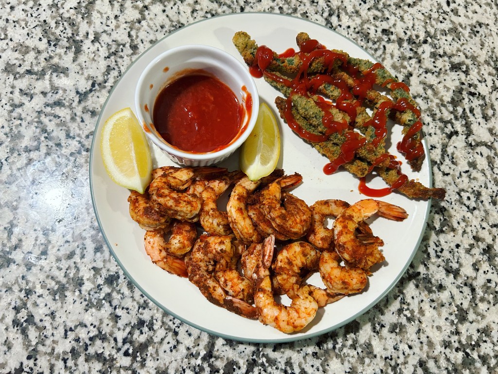 The day was done. I went to Yvette’s to paint a butterfly and then I came home and made dinner and meal prepped some breakfast. Seasoned shrimp cocktail with battered green beans. Breakfast was a low carb quiche. It was a good weekend.