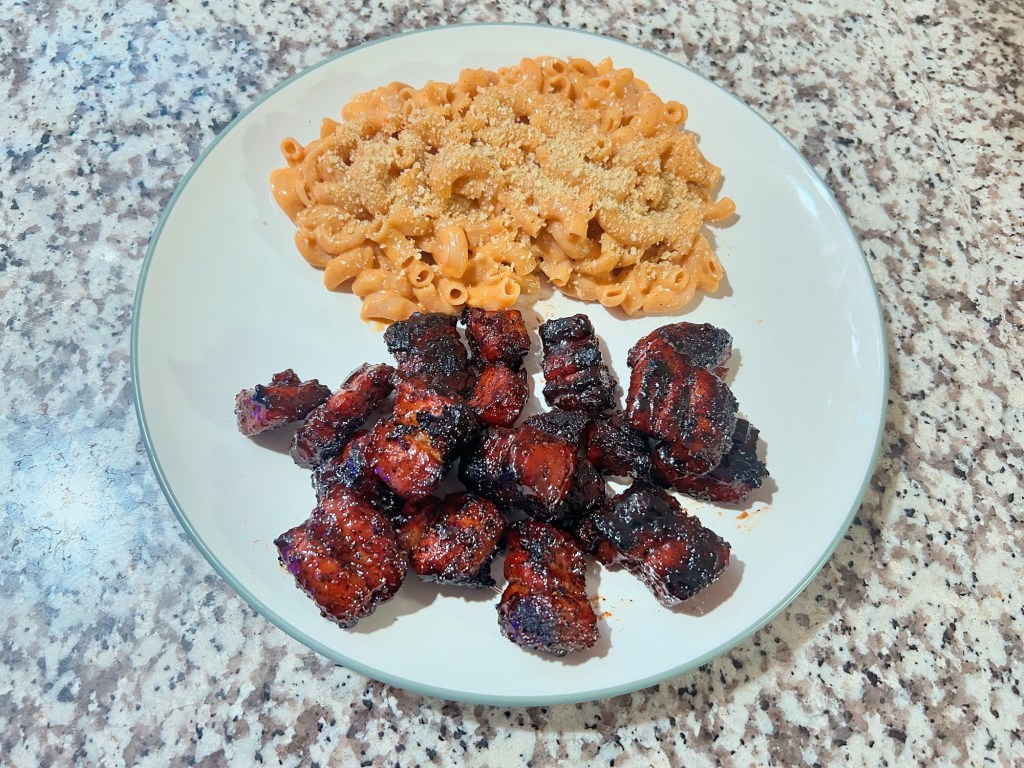 Texas whiskey glazed pork belly and Mac & Cheese. Simple and effective in serving my dinner needs.