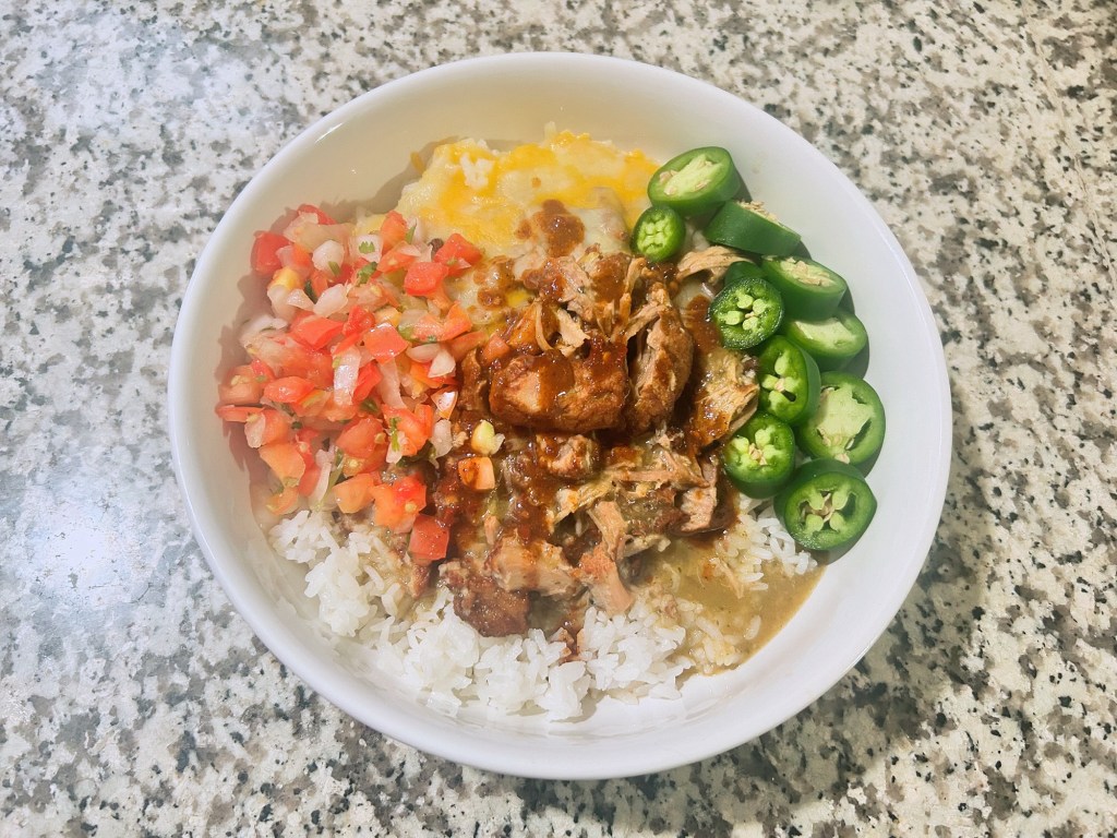 Braised pork & verde sauce w/ rice.