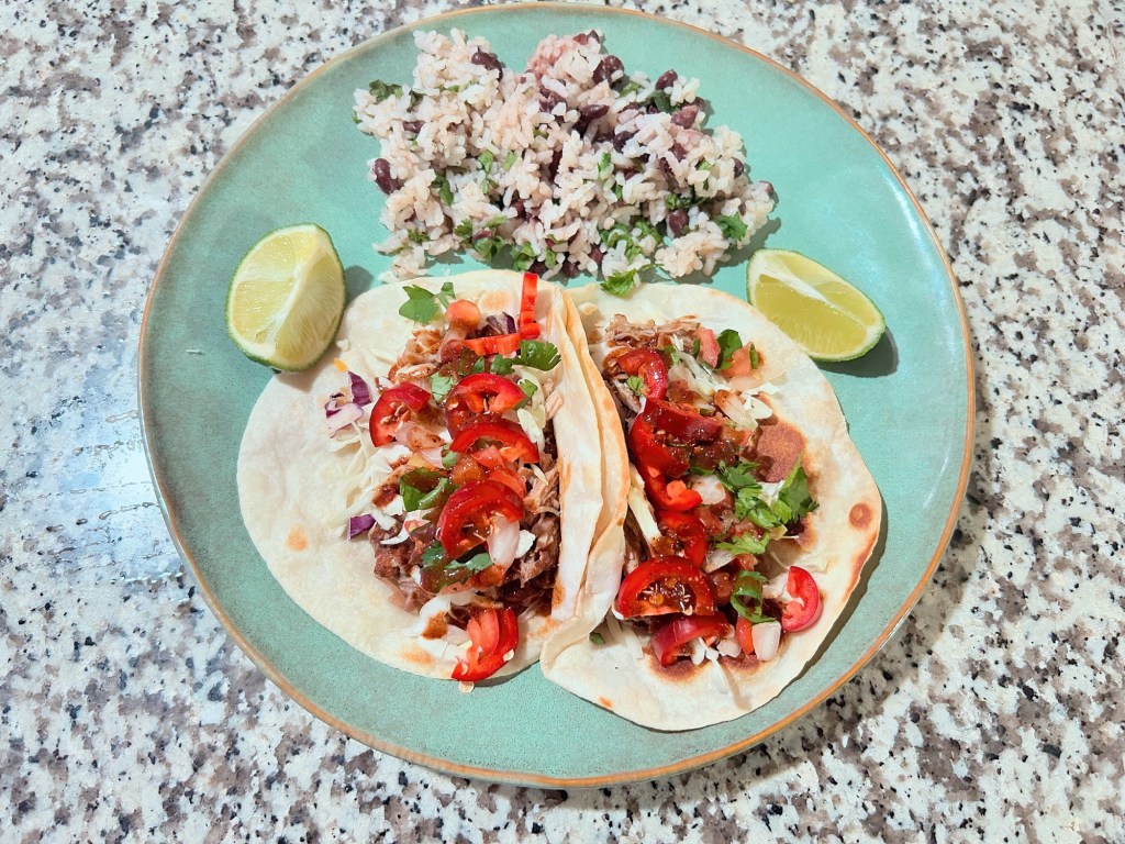 Leftover pork street tacos with cilantro lime rice.