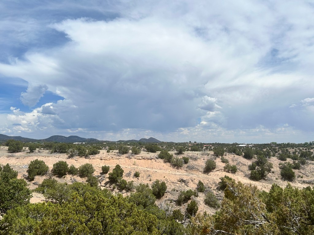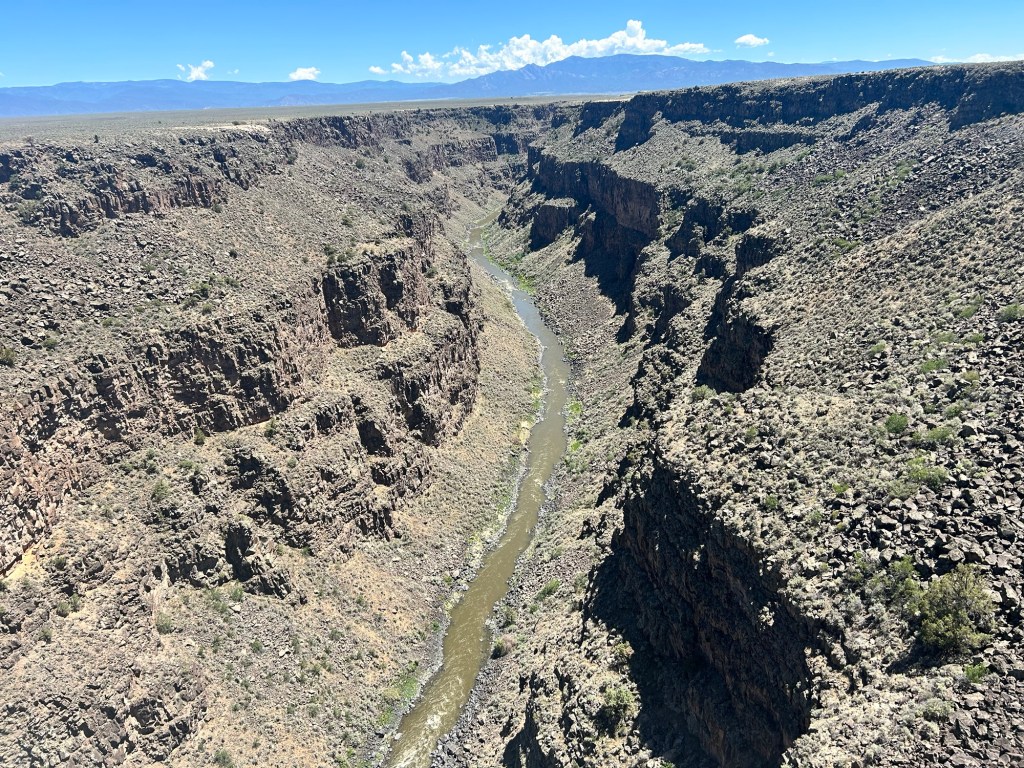Tuesday. We had a little lunch (excellent) and followed it with a hike to the Rio Grande Gorge. The hike was supposed to be 1/2 a mile and ended with a bench over a nice lookout point. Well we hiked over 3 miles and never saw the bench. I enjoyed the hike, some did not. We could not keep looking so we turned around. Yvette and her son had an appointment for some horseback riding. They had an amazing time and I was kind of jealous.