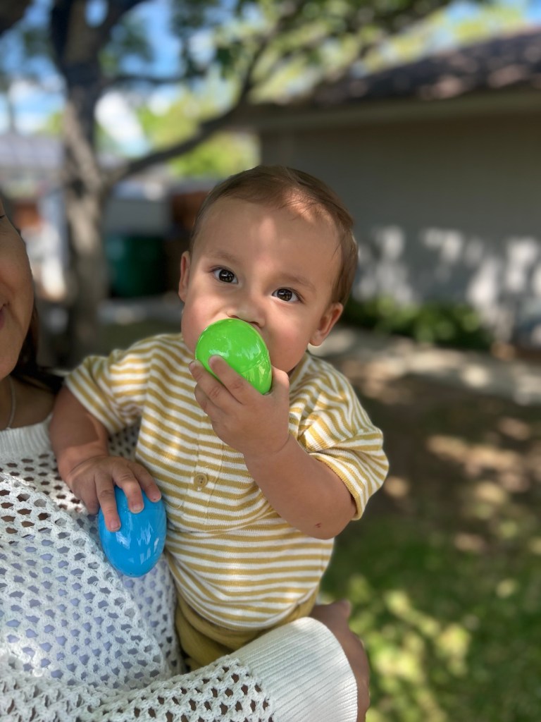 We went our separate ways around one. They were having lunch with my aunt at The Club, and we were having lunch at Yvette’s parents’ house with the rest of the family. Roger and Emma went all out with brisket, ribs, sausage, potato salad, and beans. We even had a little egg hunt for baby Niles. He is such a cutie.