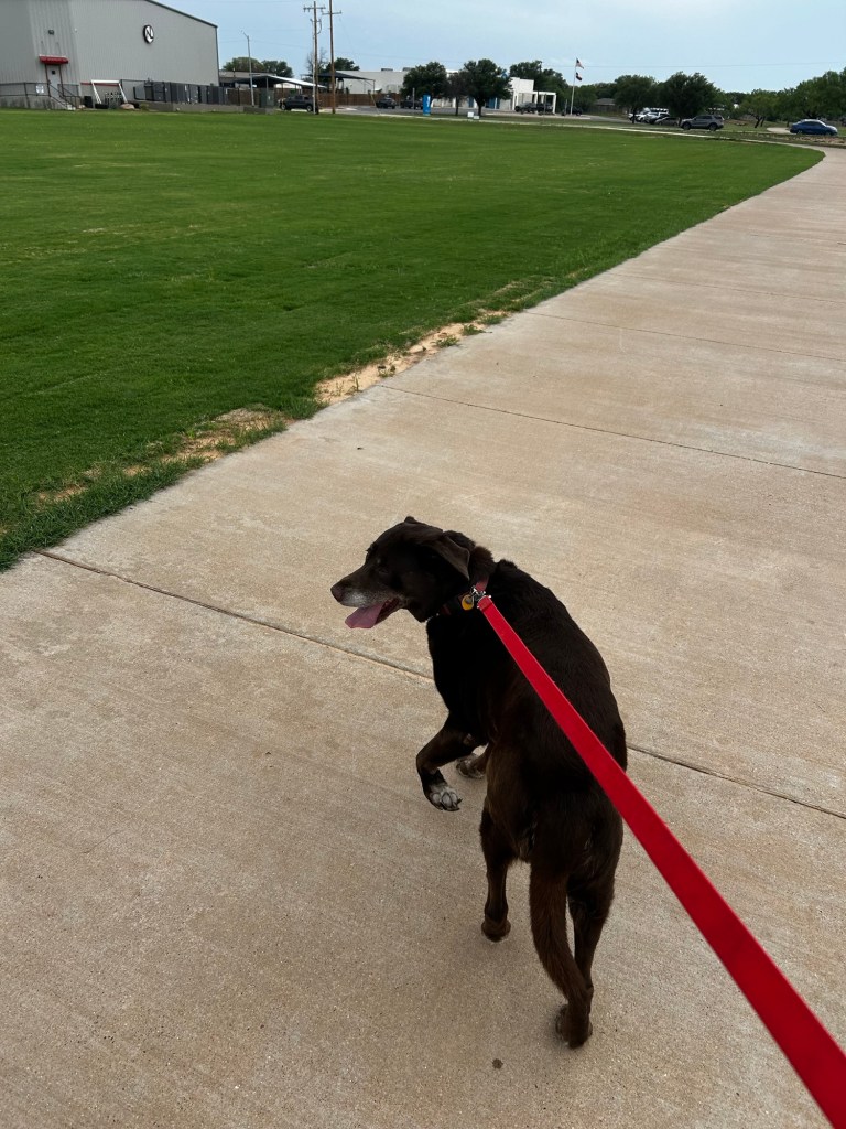 I ran more errands, and when I finally got home, I decided to take Hazel for a walk—away from campus this time. We went to the Arroyo Trails. It was a nice afternoon, with a cool breeze and distant thunderstorms shading us from the sun. It’s a place we used to walk all the time when she was a puppy. It was a real treat going down memory lane with her.