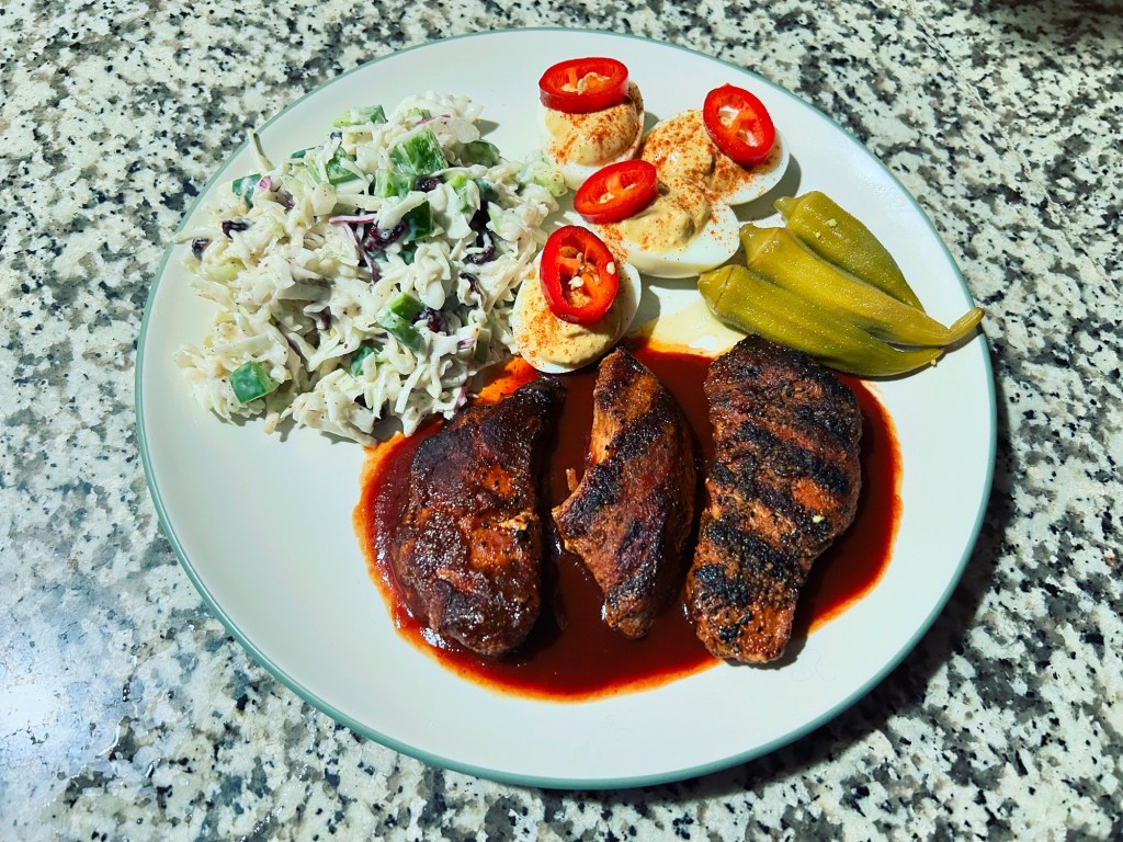 For dinner I made some Pineapple fried rice and teriyaki chicken thighs on the grill.